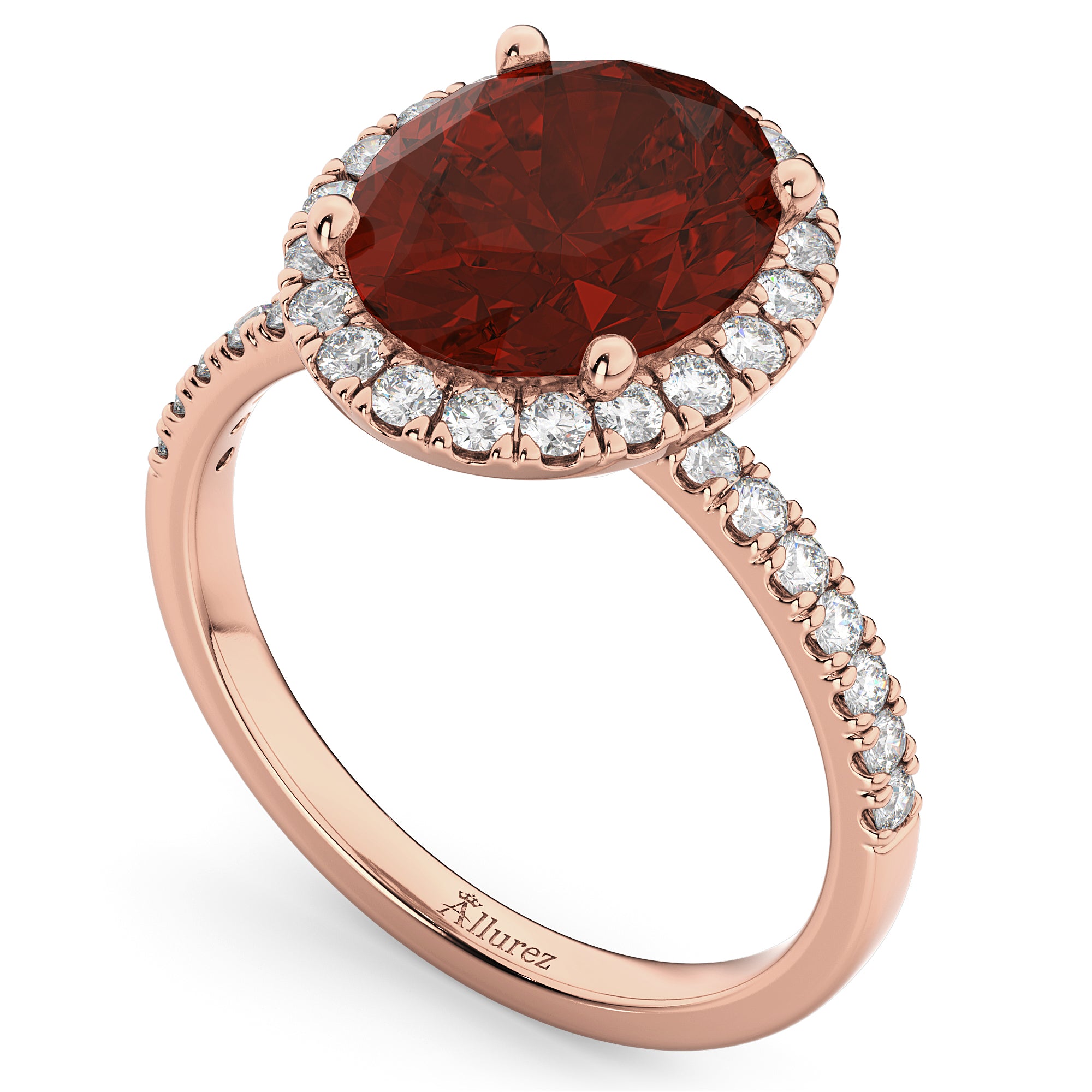 Oval Cut Halo Garnet & Diamond Engagement Ring 14K Rose Gold 3.31ct