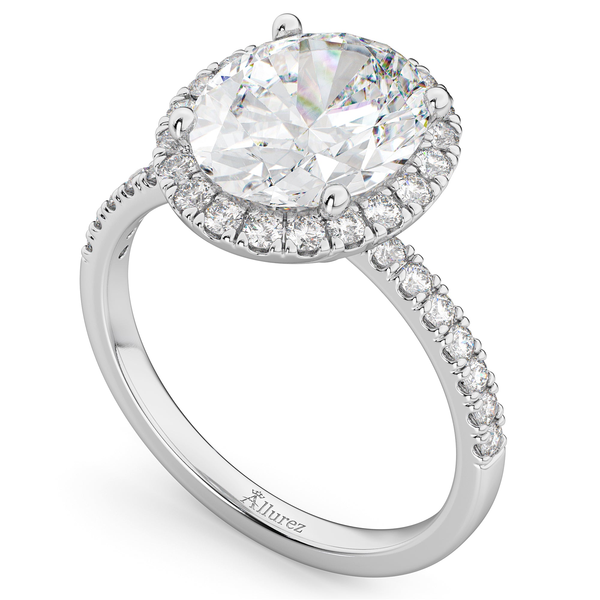 Oval Cut Halo Lab Grown Diamond Engagement Ring 14K White Gold (3.51ct)
