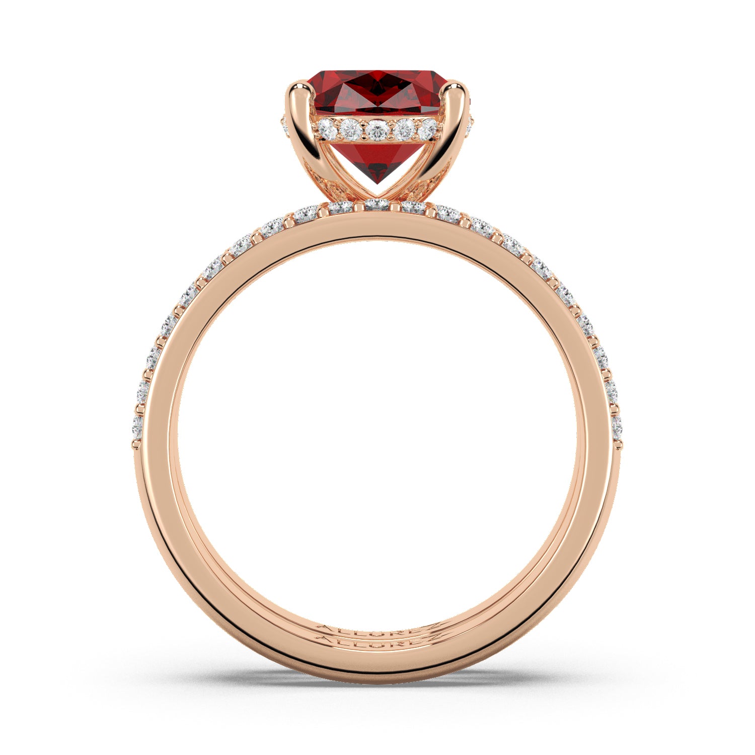 Discover timeless elegance with our Oval Cut Ruby Bridal Ring Set, crafted in exquisite 14K rose gold. This stunning set features an enchanting oval-cut ruby center stone, encircled by a delicate hidden halo of sparkling diamonds. Perfect for the bride who desires a blend of sophistication and romance, each piece is meticulously designed to symbolize enduring love and commitment. Elevate your wedding day with this luxurious ruby bridal ring set, designed to captivate hearts and create cherished memories for a lifetime.