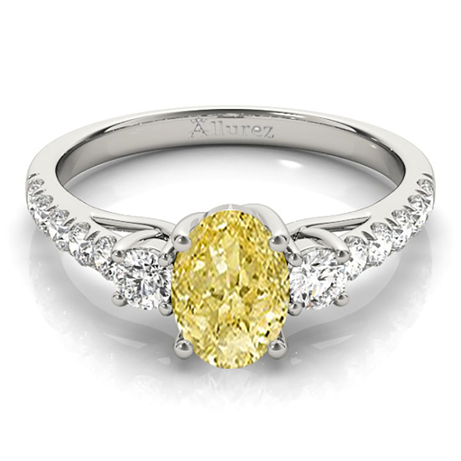 Oval Cut Yellow Diamond & Diamond Engagement Ring 14k White Gold (1.40ct)