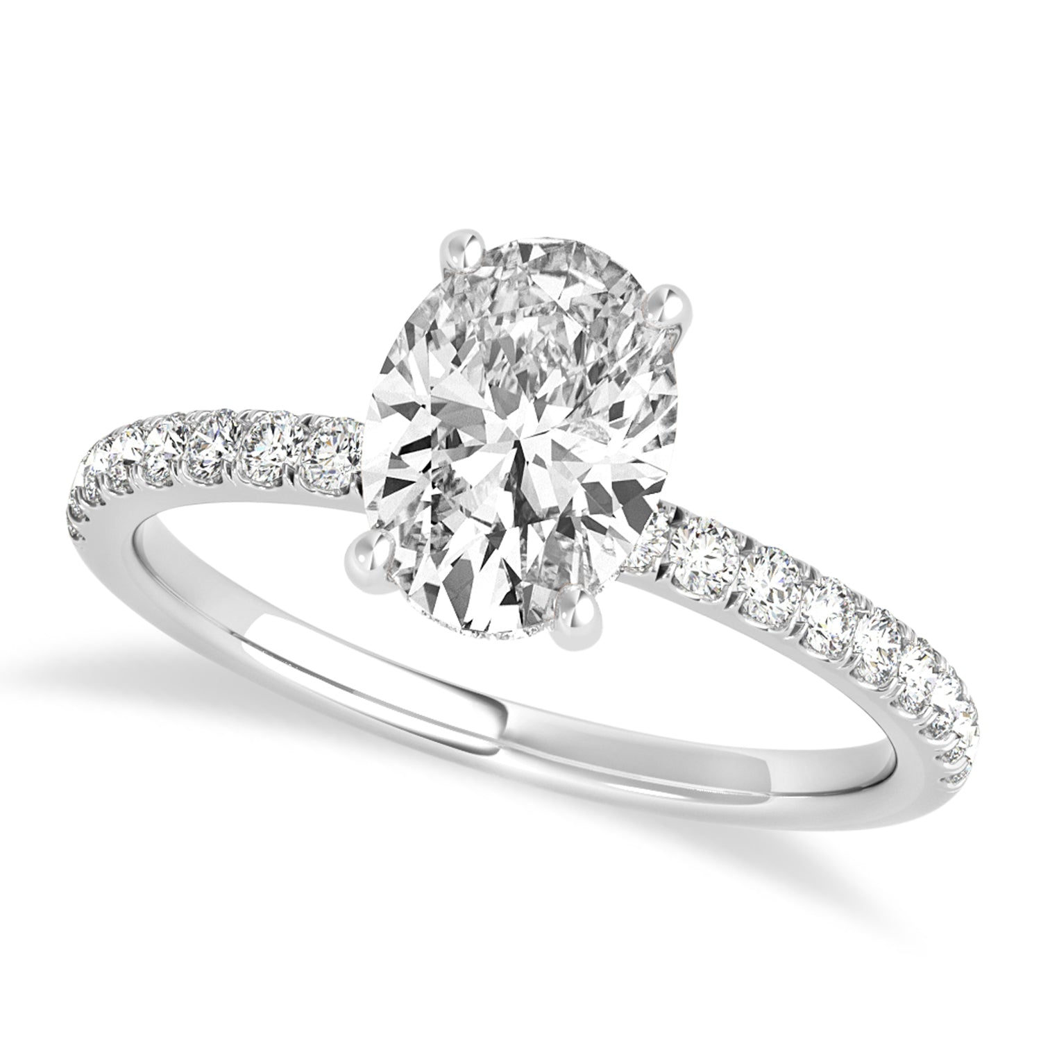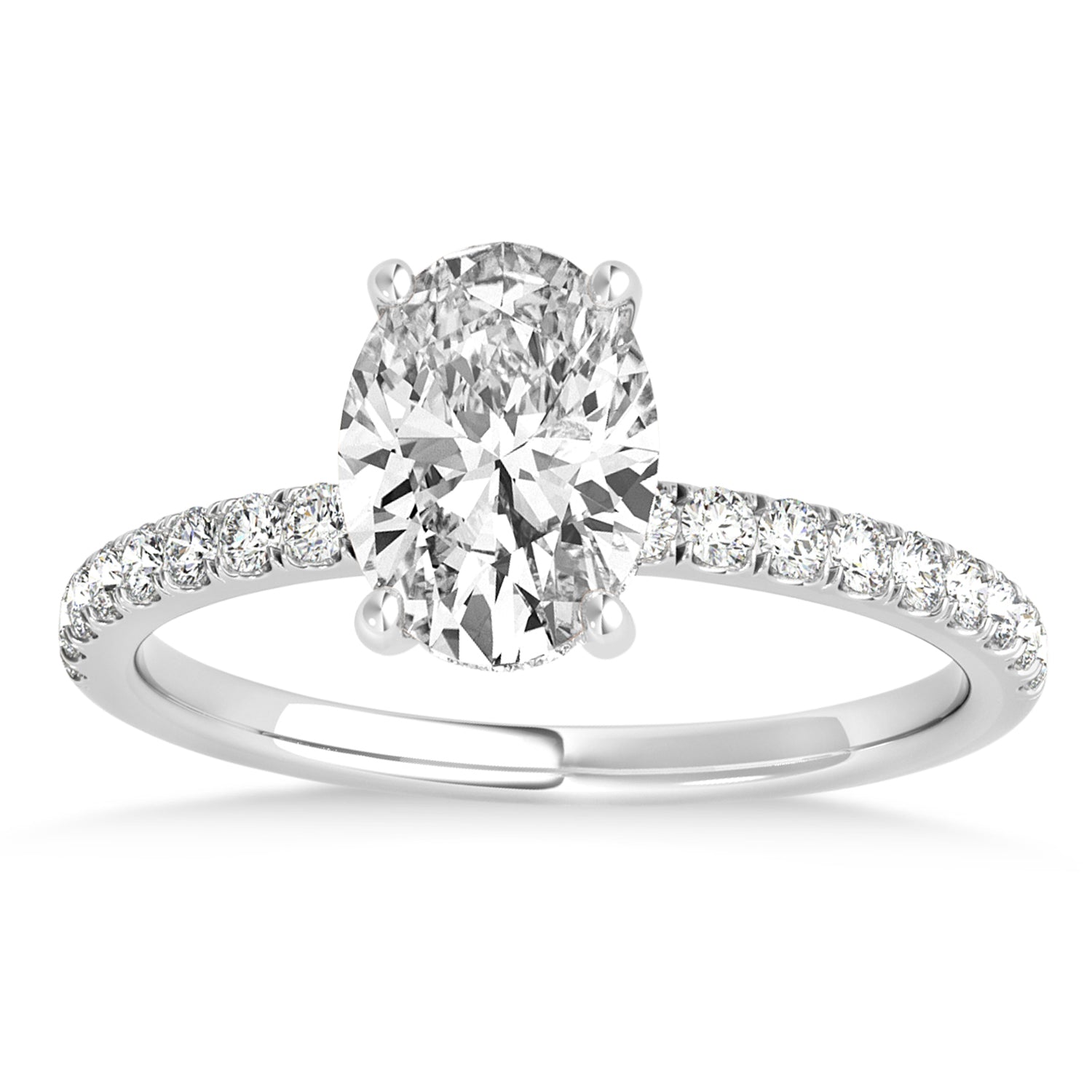 Oval Diamond Single Row Hidden Halo Engagement Ring 14k White Gold (0.