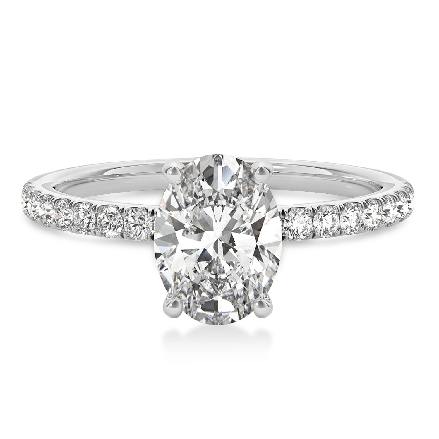 Oval Diamond Single Row Hidden Halo Engagement Ring 14k White Gold (2.