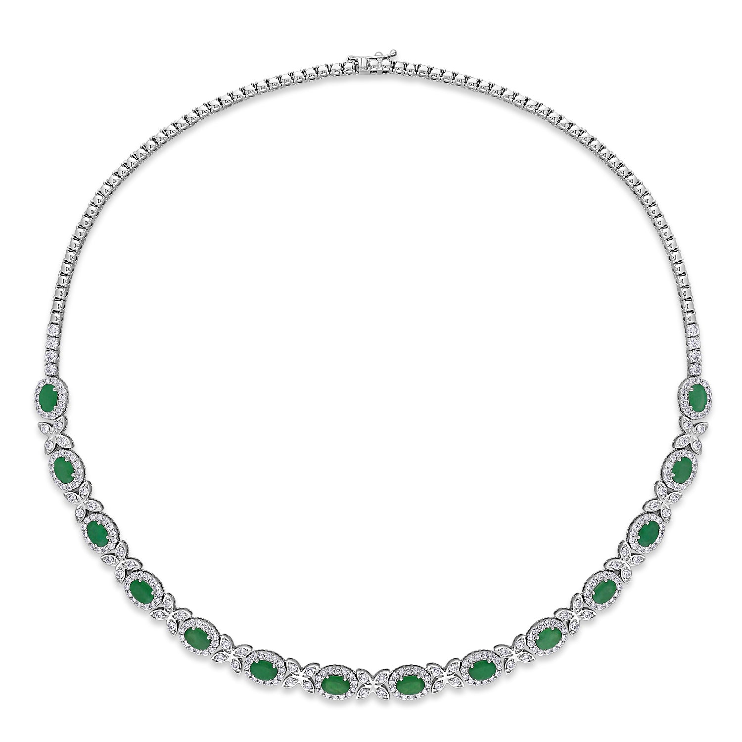 Oval Emerald & Diamond Necklace 18k White Gold (10.30 ct)