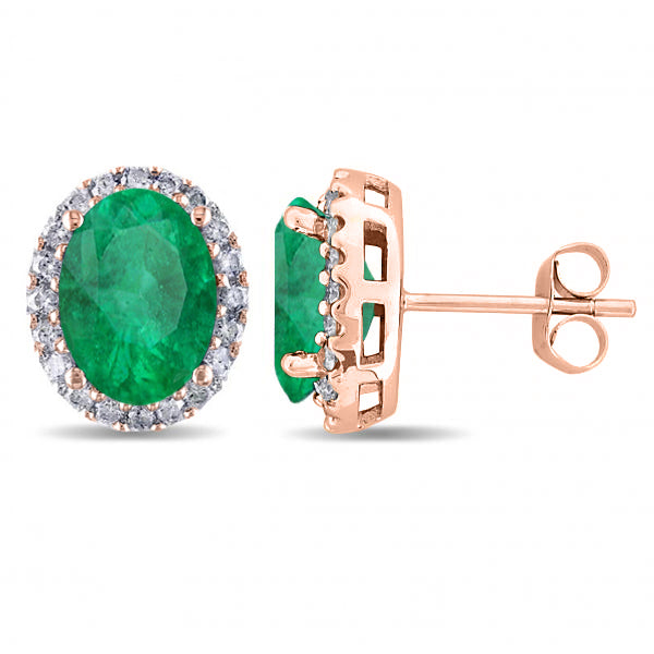 Oval Emerald & Halo Diamond Stud Earrings 14k Rose Gold 4.20ct