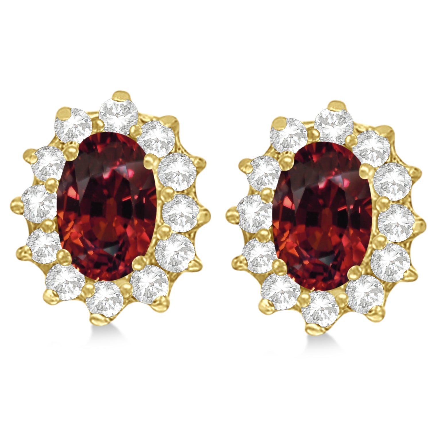 Oval Garnet & Diamond Accented Earrings 14k Yellow Gold (2.05ct)