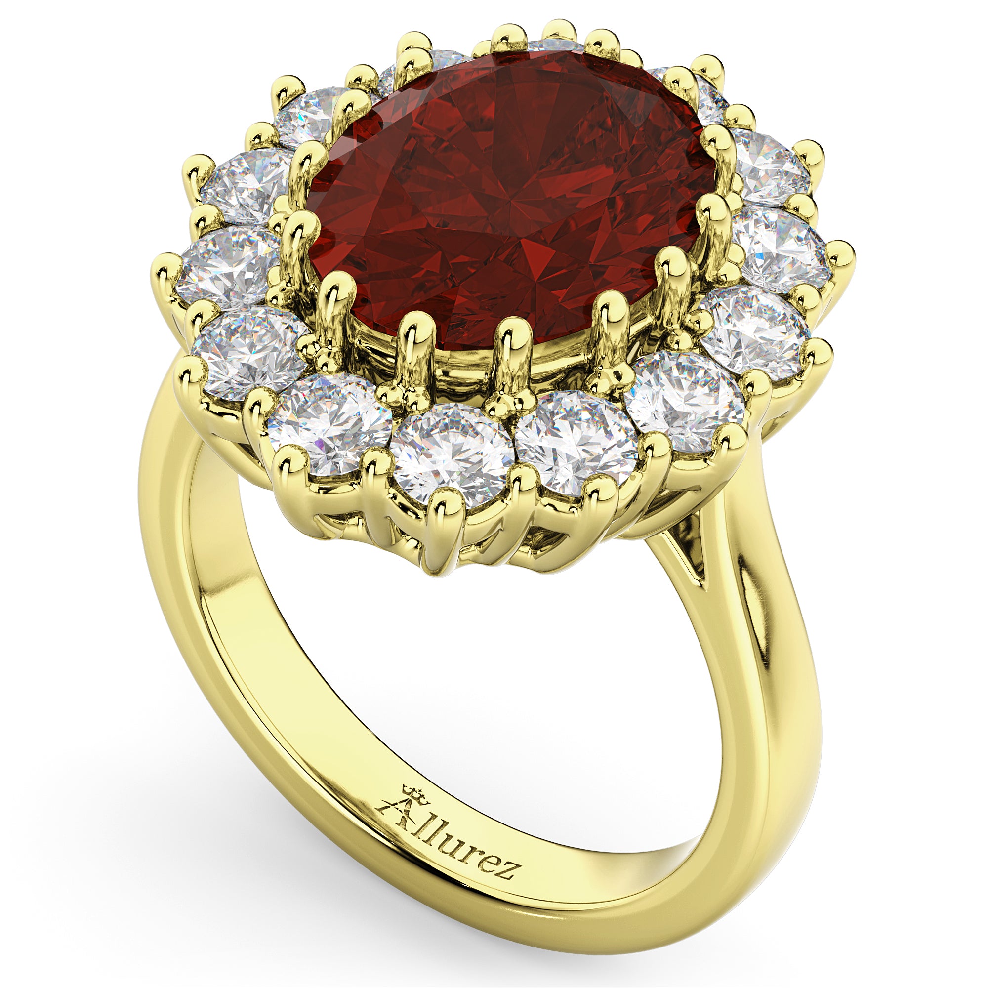Oval Garnet & Diamond Halo Lady Di Ring 18k Yellow Gold (6.40ct)