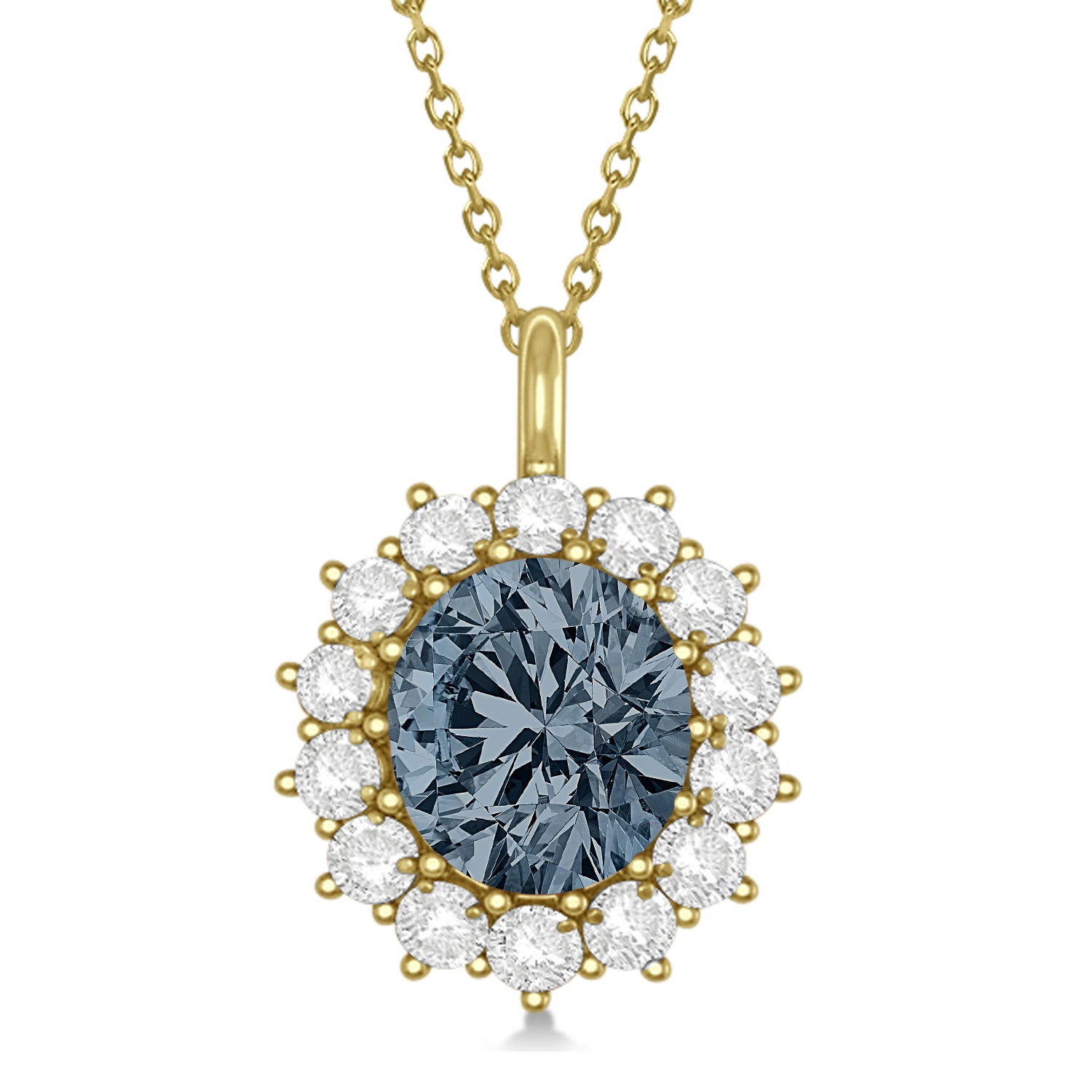 Inspired by jewelry worn by Lady Diana and Princess Kate Middleton, this gorgeous Precious Gemstone pendant necklace showcases an oval 11x9mm gray spinel accented by 14 brilliant-cut round diamonds in a halo fashion.