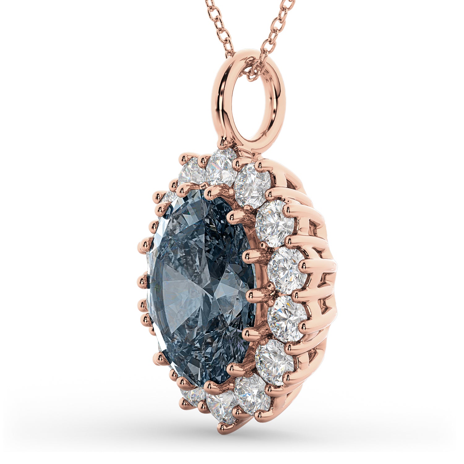 Oval Gray Spinel & Diamond Halo Pendant Necklace 14k Rose Gold (6.40ct)