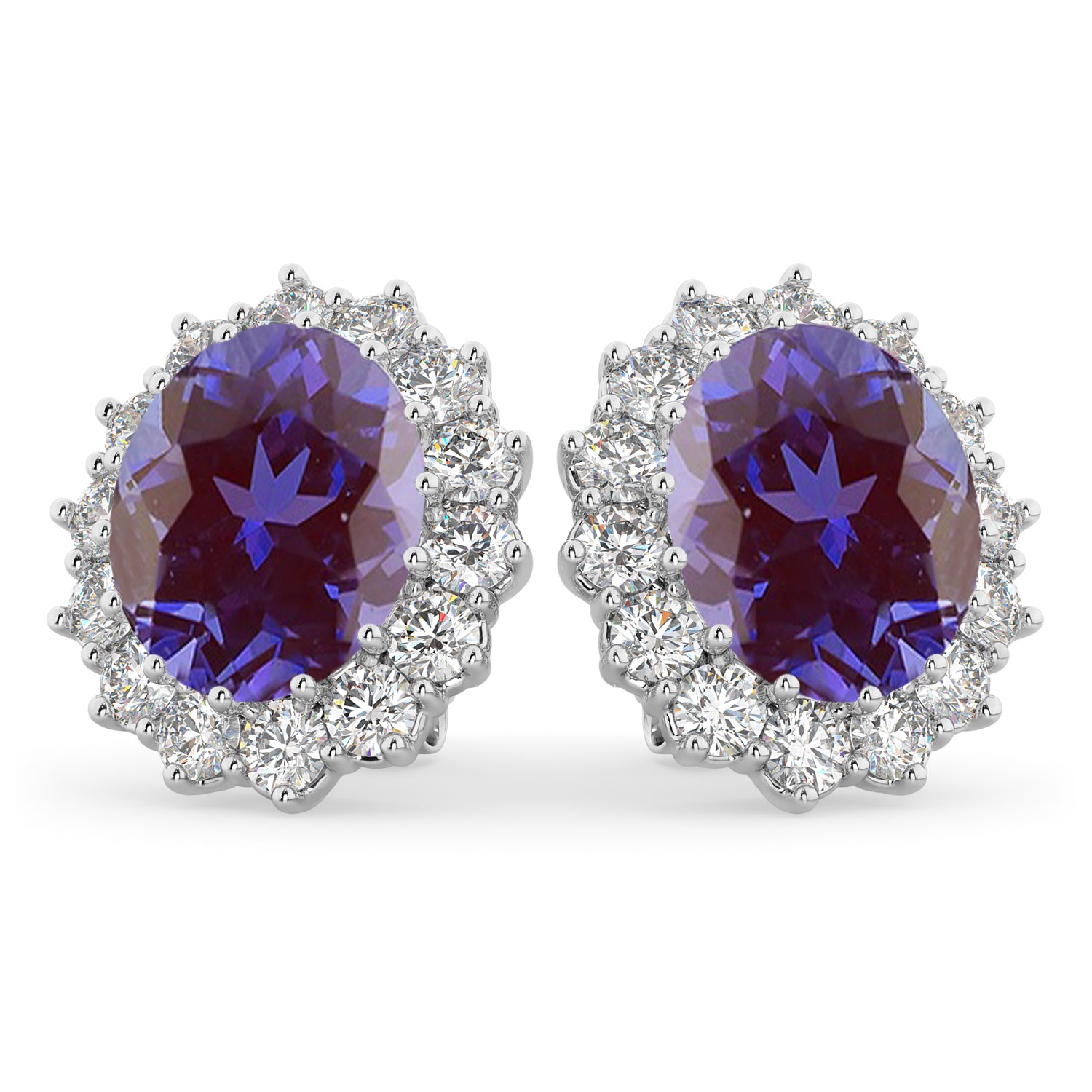 Oval Lab Alexandrite & Diamond Accented Earrings 14k White Gold (10.80ctw)