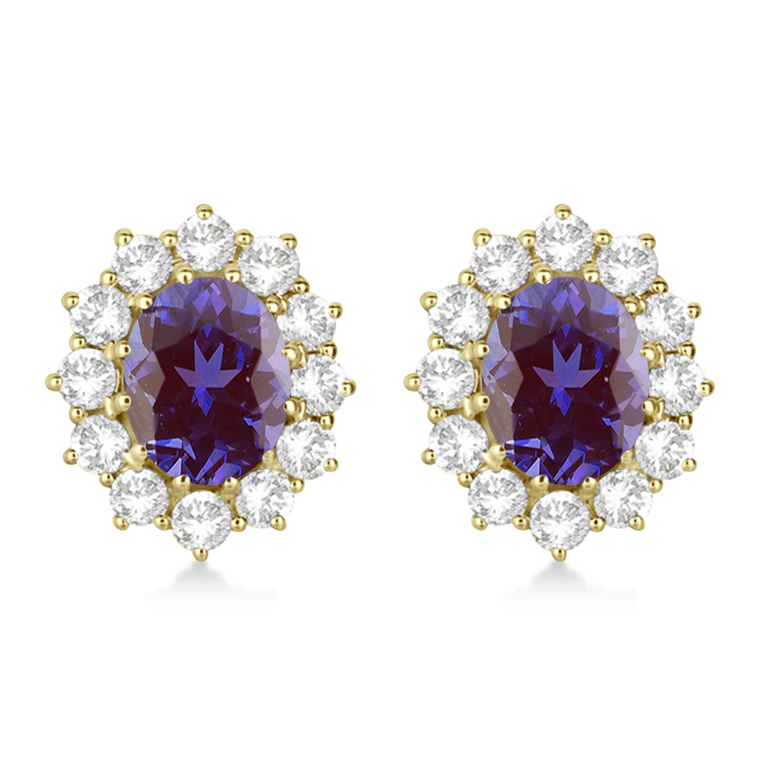 Oval Lab Alexandrite & Diamond Accented Earrings 14k Yellow Gold (7.10ctw)
