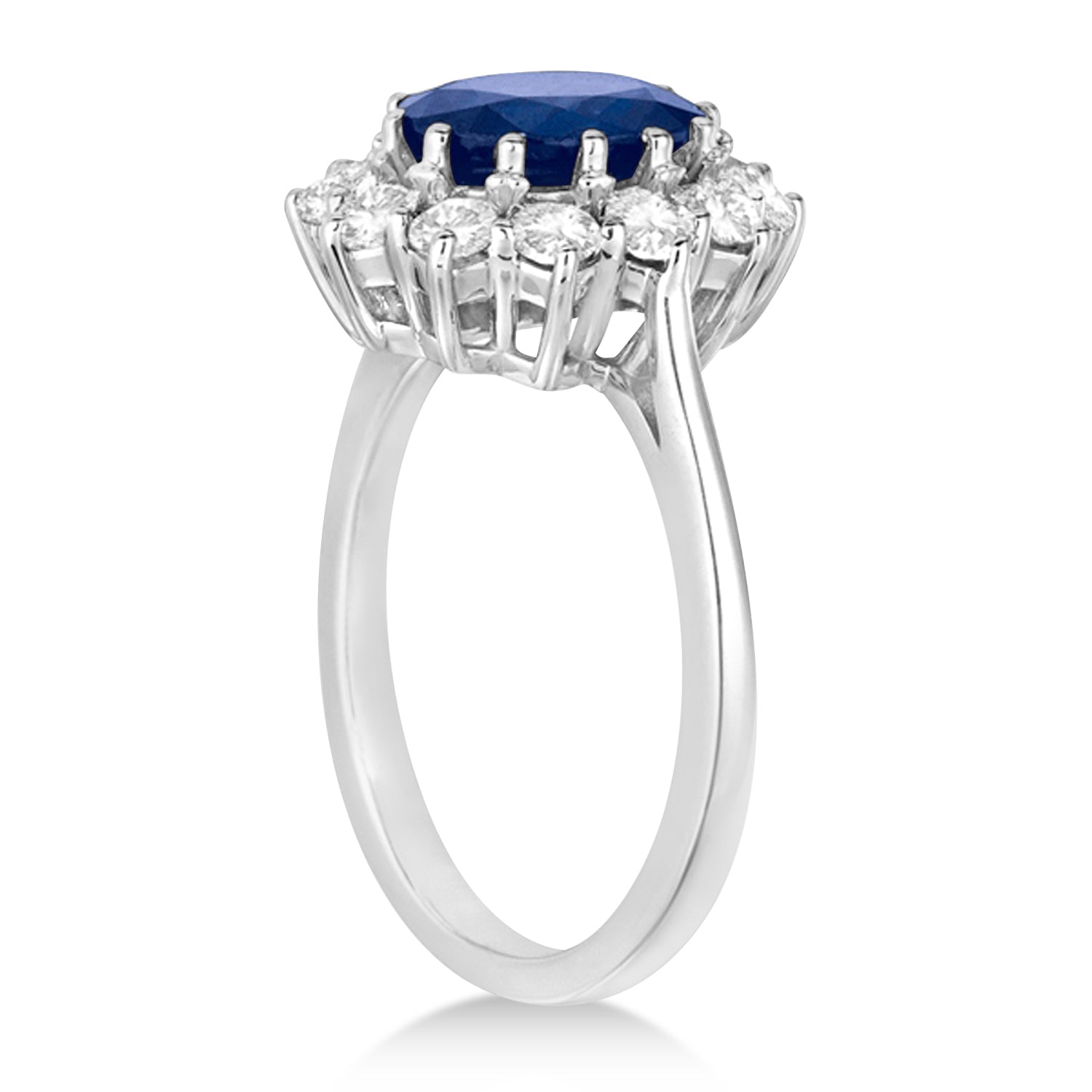 Oval Lab Blue Sapphire & Diamond Accented Ring 14k White Gold (5.40ctw)