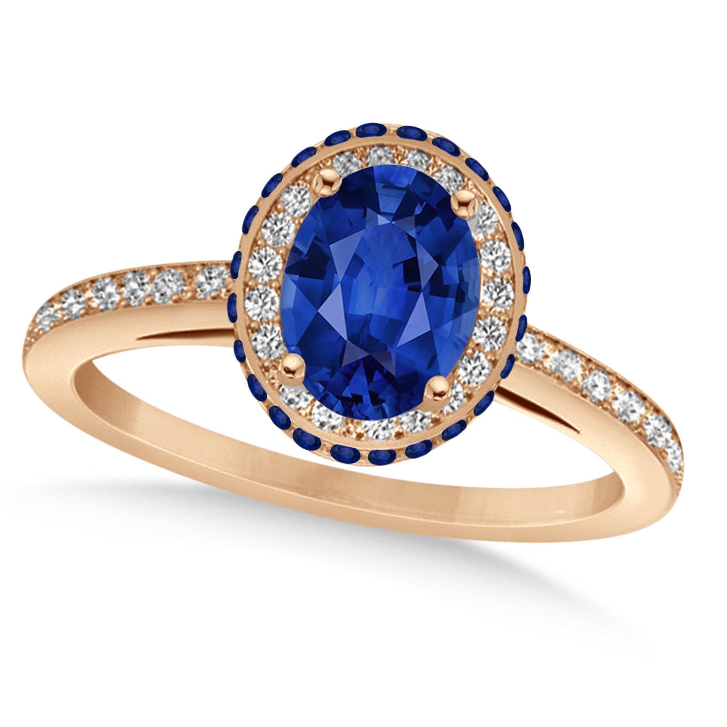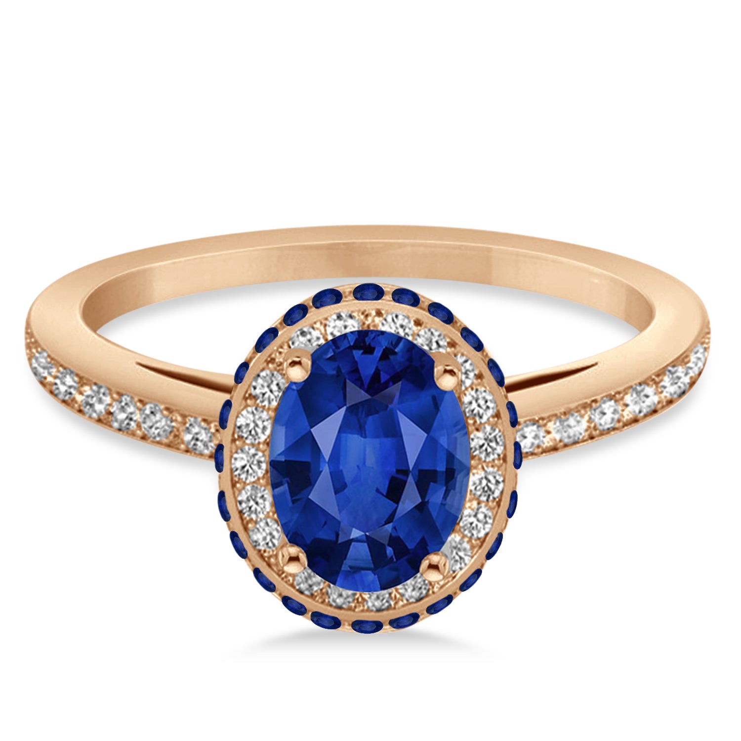 Oval Lab Blue Sapphire & Diamond Halo Engagement Ring 14k Rose Gold 2.