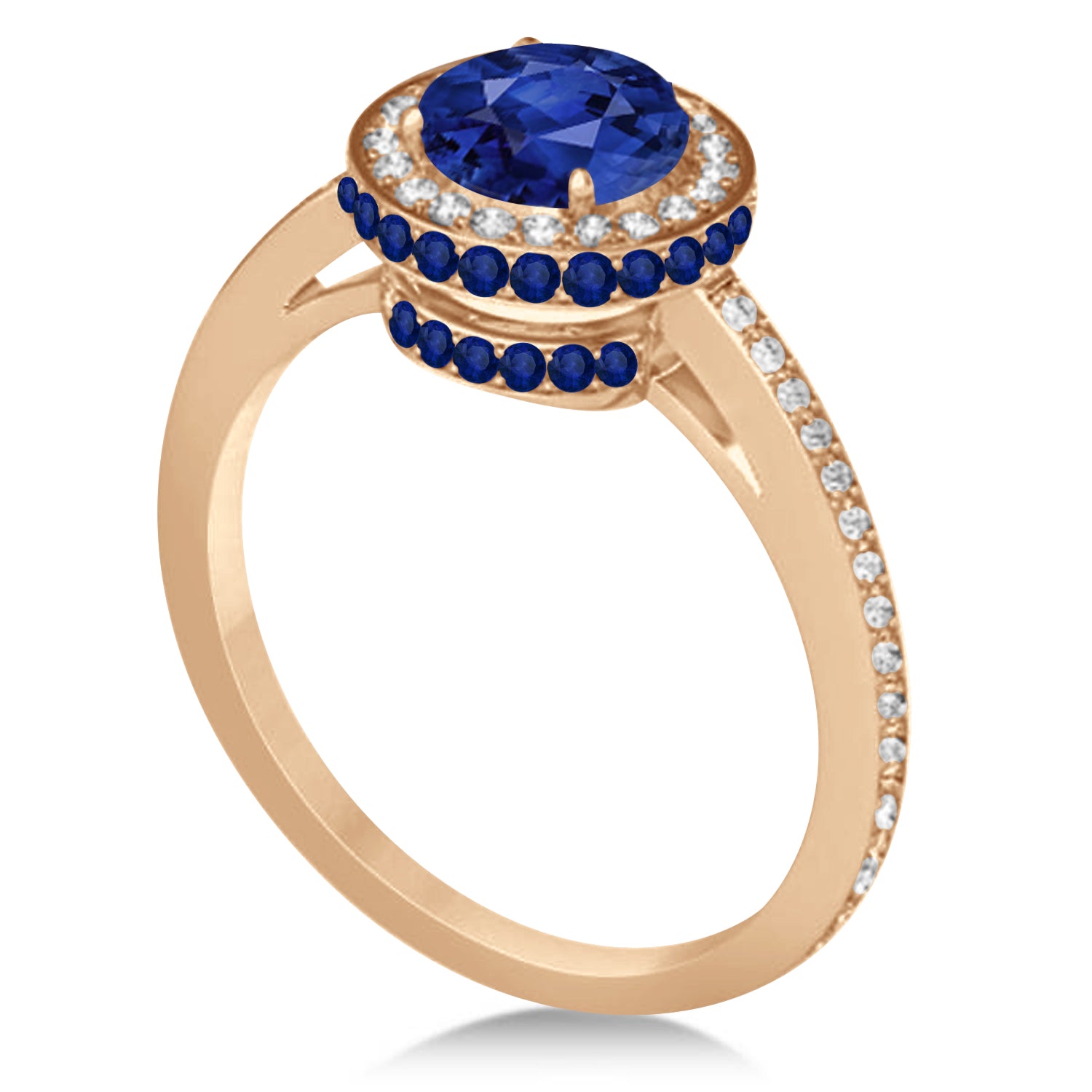 Oval Lab Blue Sapphire & Diamond Halo Engagement Ring 14k Rose Gold 2.00ct