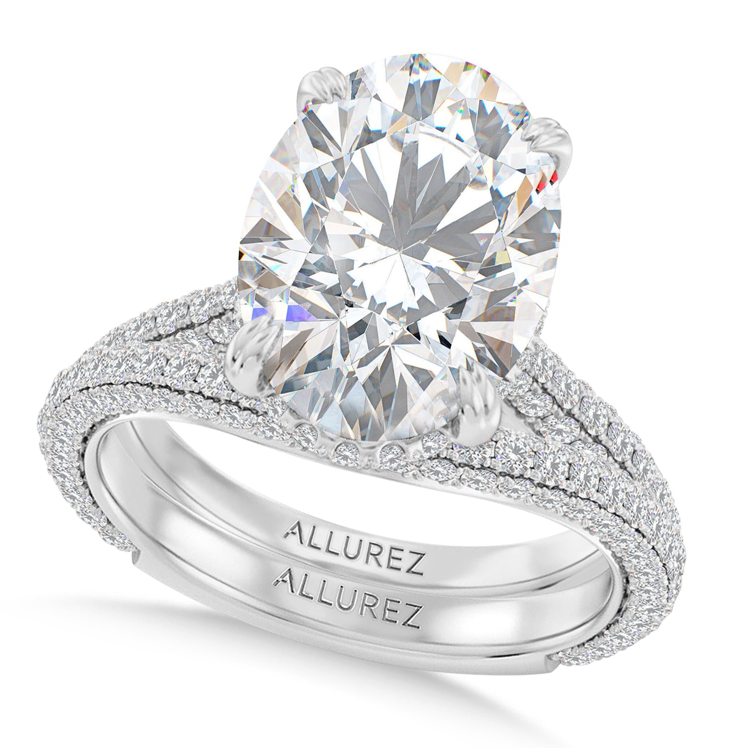 Begin your journey together with this stunning 3.77ct oval lab created diamond bridal set in...