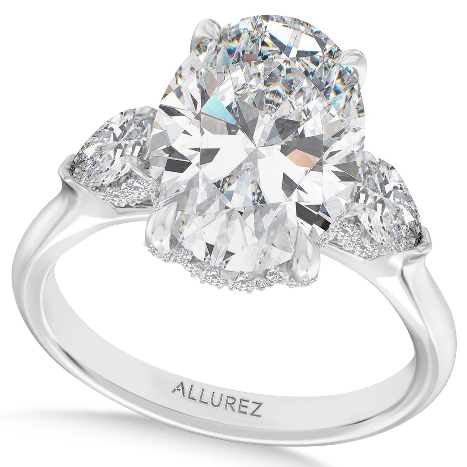 Embrace timeless beauty with this Oval Lab Diamond Hidden Halo Engagement Ring in 14K White Gold. Featuring a breathtaking 8.00CT total weight, it boasts a 7.00CT oval lab grown center stone accented by 1.00CT of pear and round hidden halo diamonds for an elegant and radiant look. A perfect blend of romance, brilliance, and bold design.