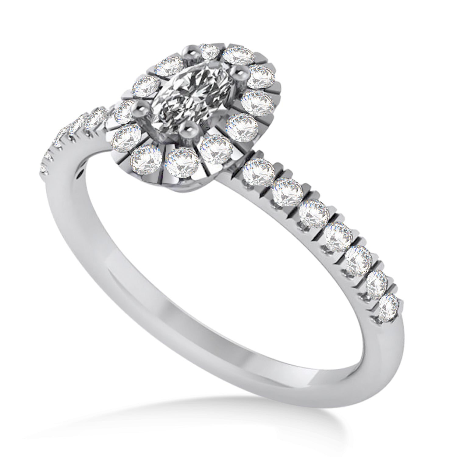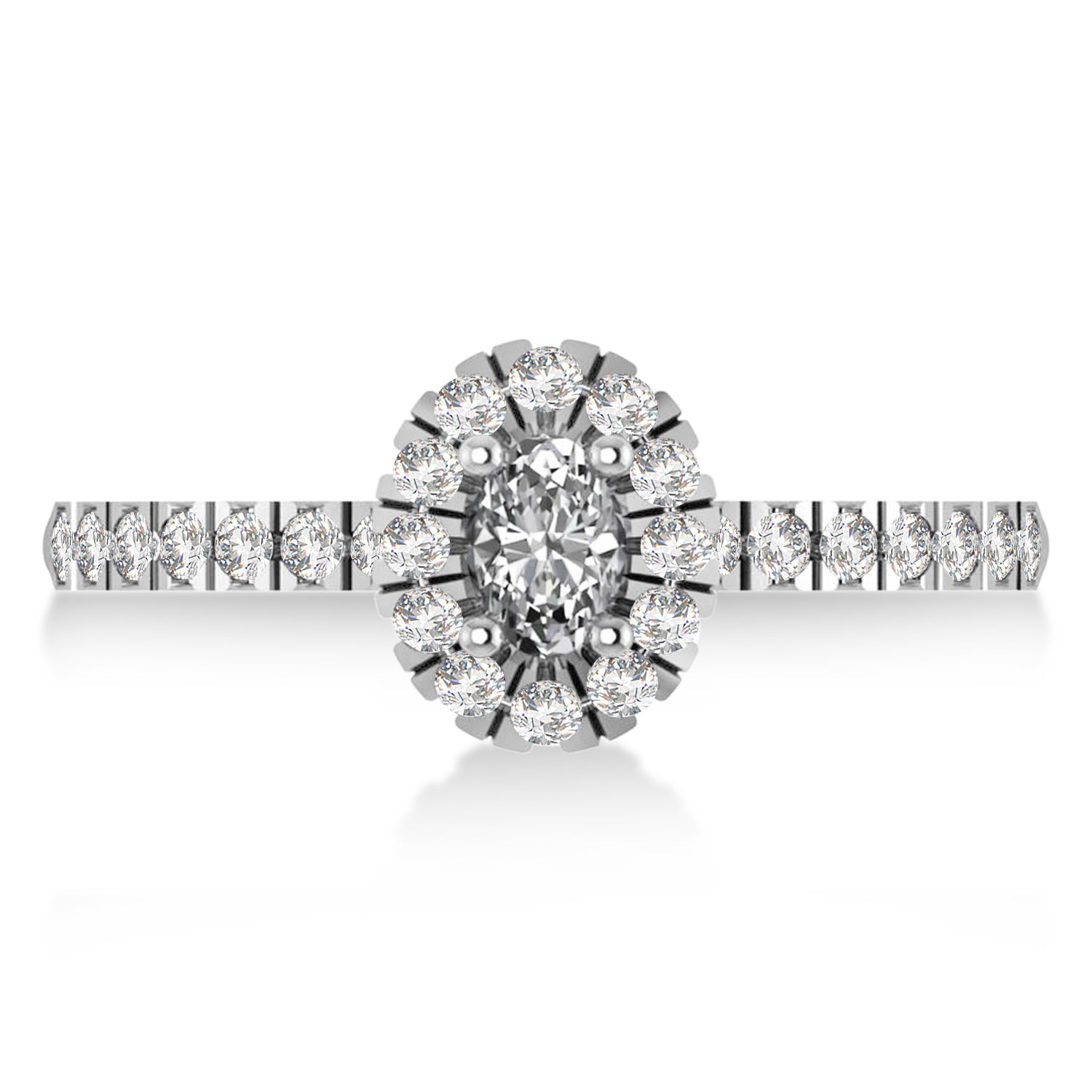 Oval Lab Grown Diamond Halo Engagement Ring 14k White Gold (0.60ct)