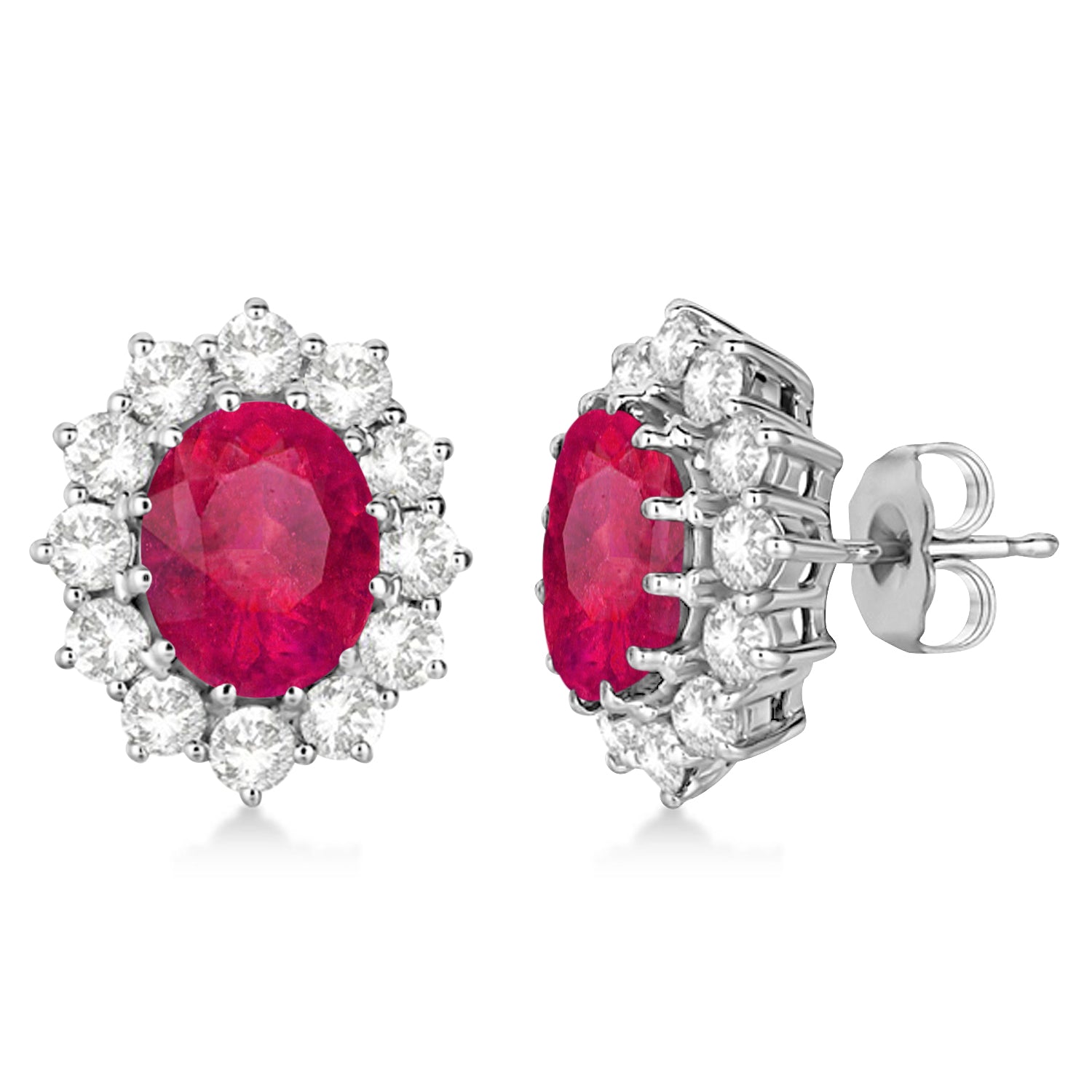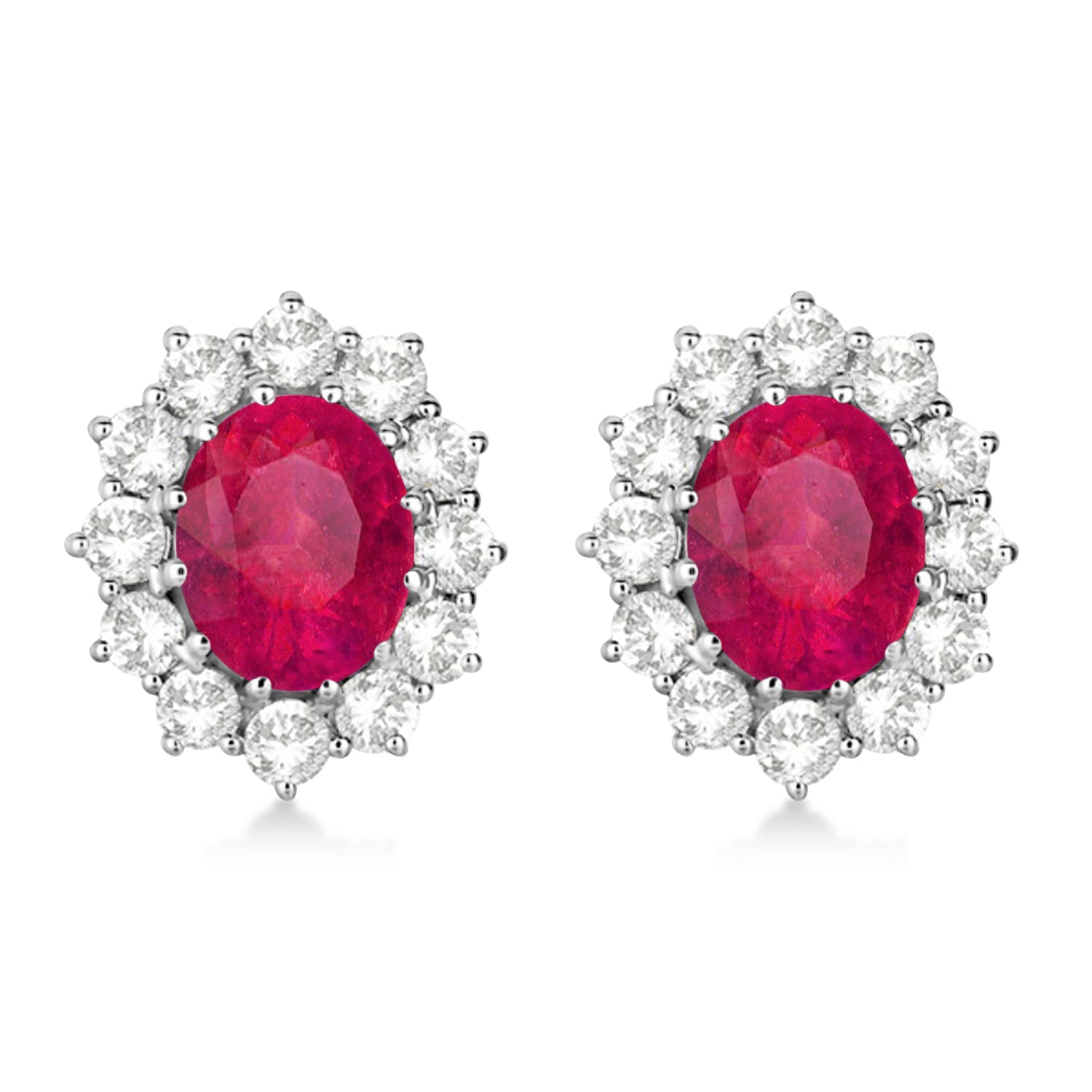 Oval Lab Ruby and Diamond Earrings 14k White Gold (7.10ctw)