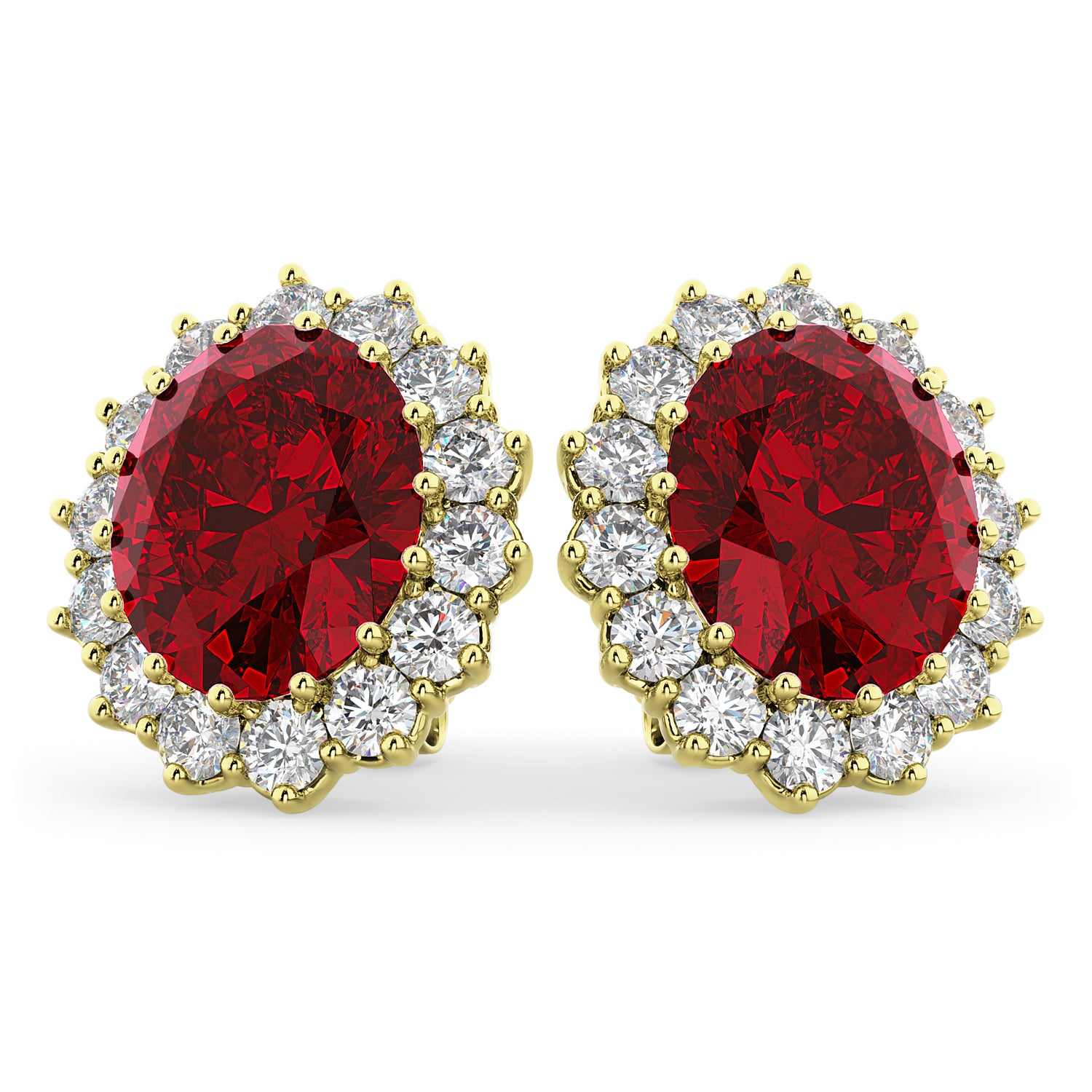 Oval Lab Ruby and Diamond Earrings 14k Yellow Gold (10.80ctw)