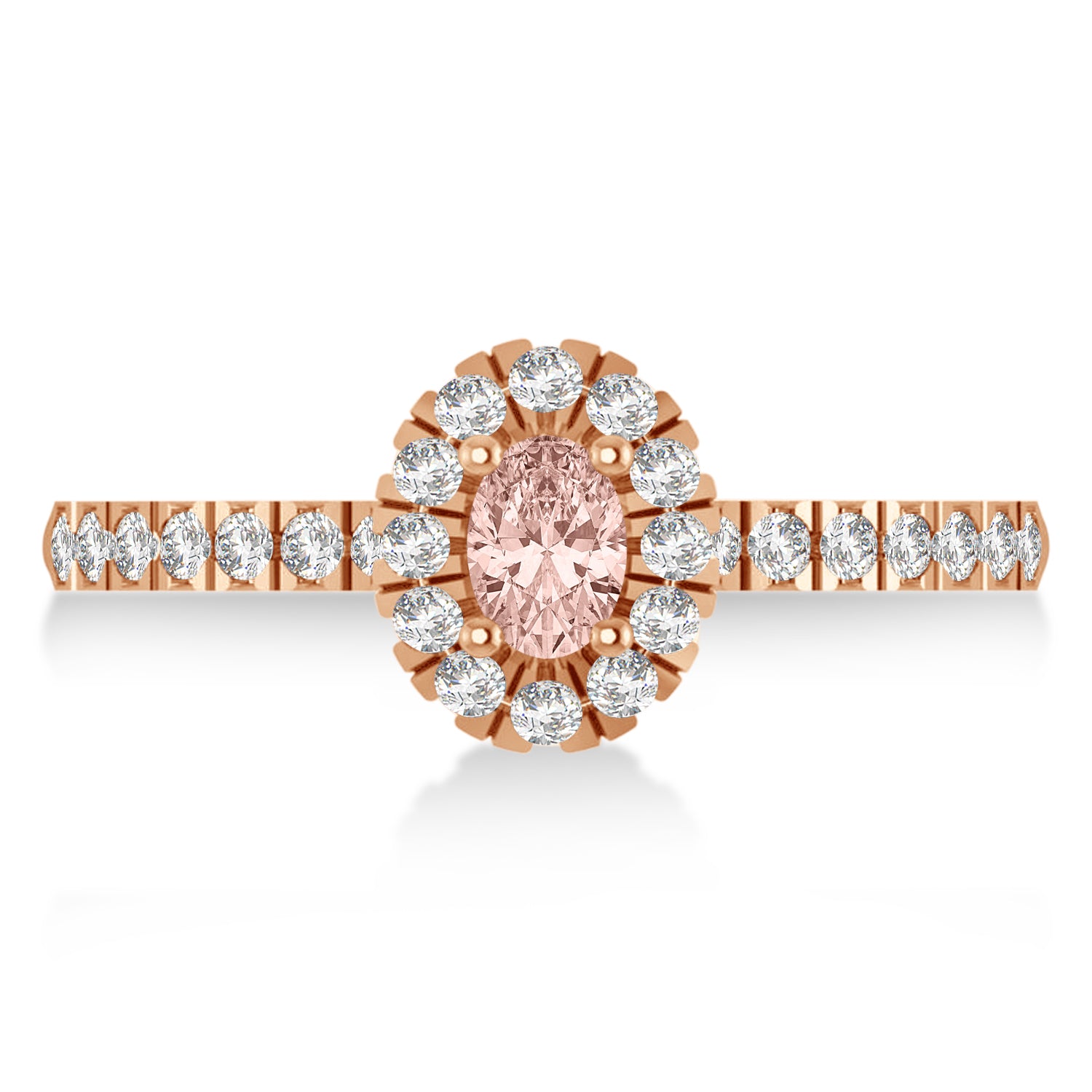 Oval Morganite & Diamond Halo Engagement Ring 14k Rose Gold (0.60ct)