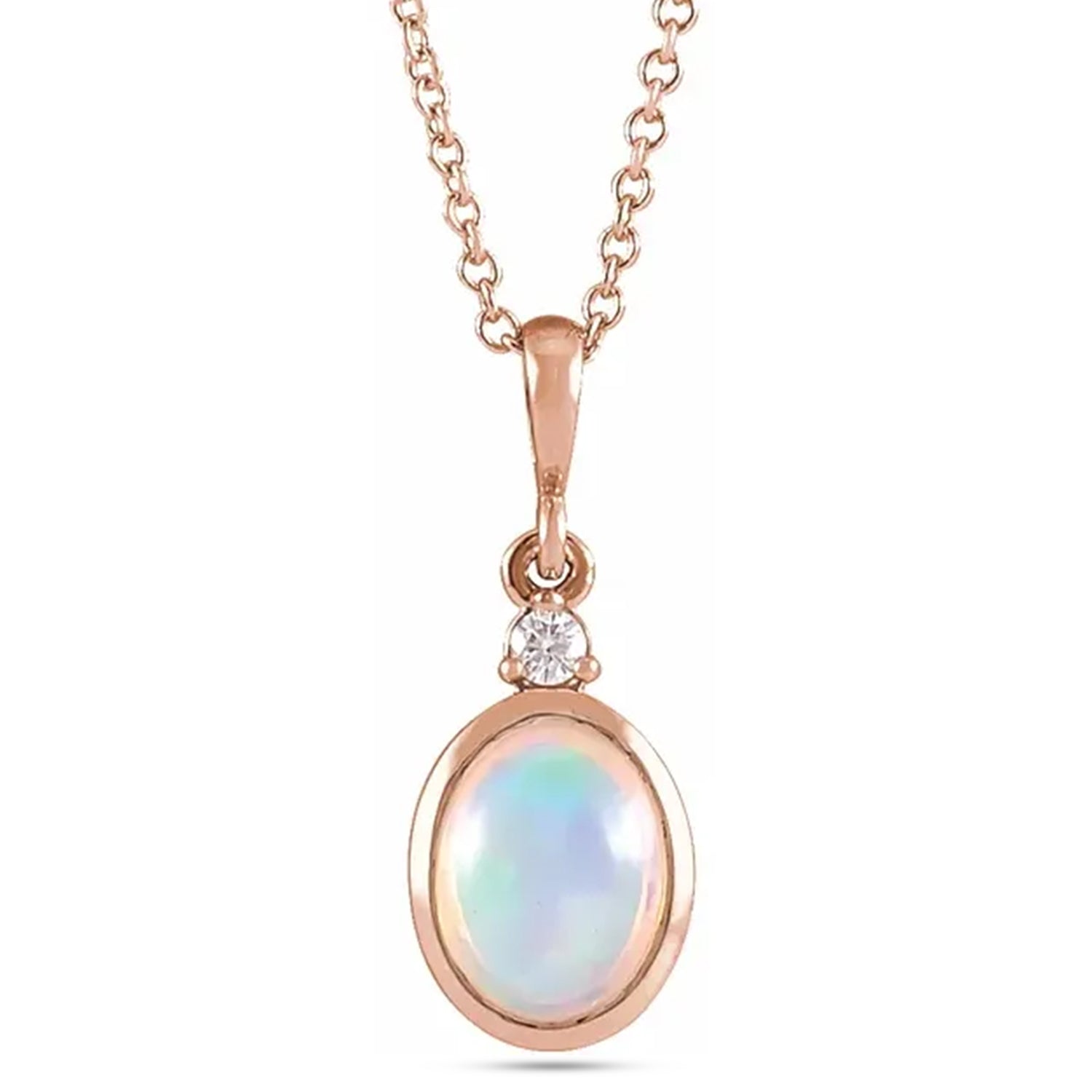 Oval Natural White Ethiopian Opal & Diamond Pendant Necklace 14K Rose Gold (1.57ct)