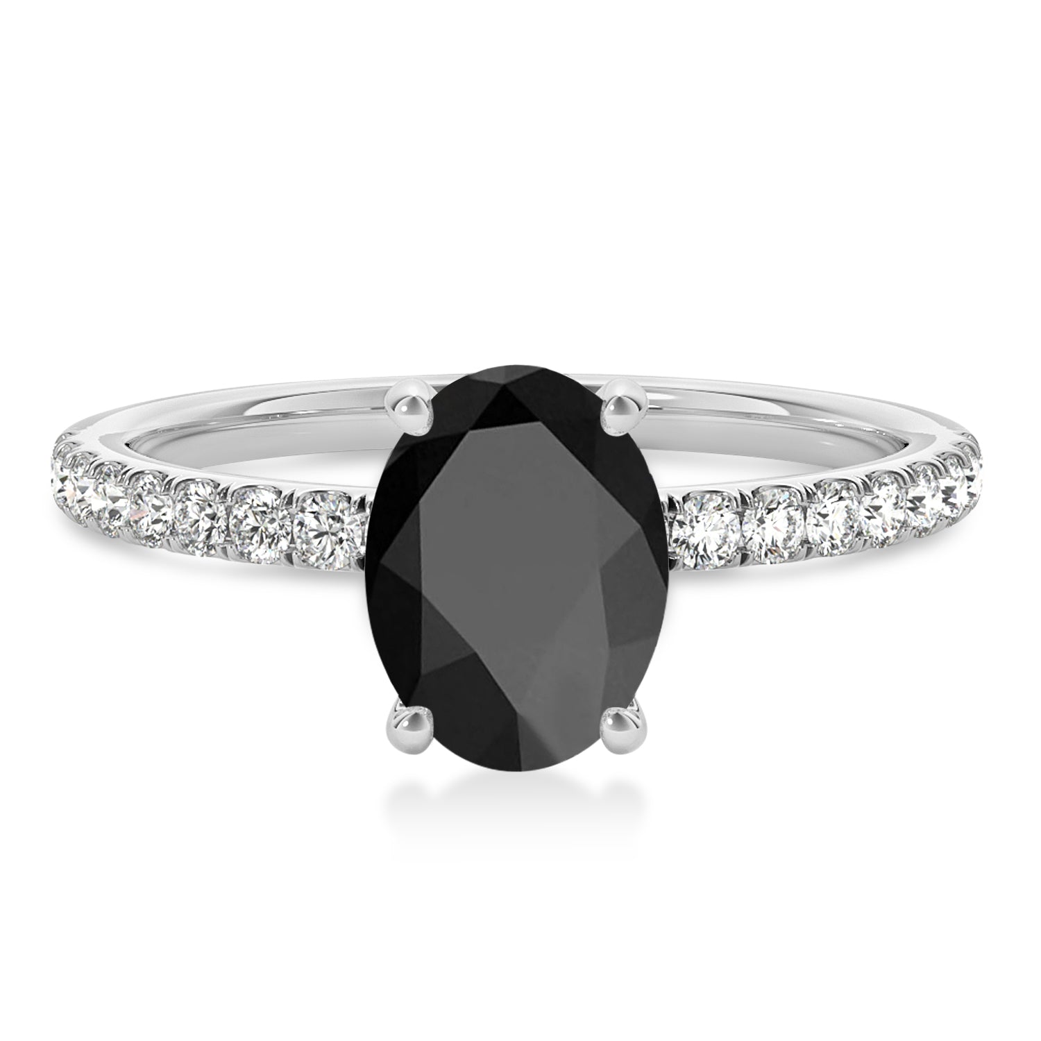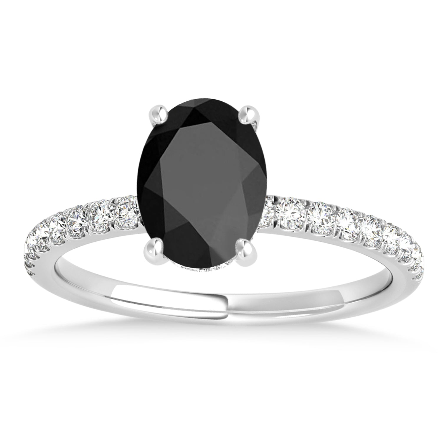 Oval Onyx & Diamond Single Row Hidden Halo Engagement Ring 14k White G
