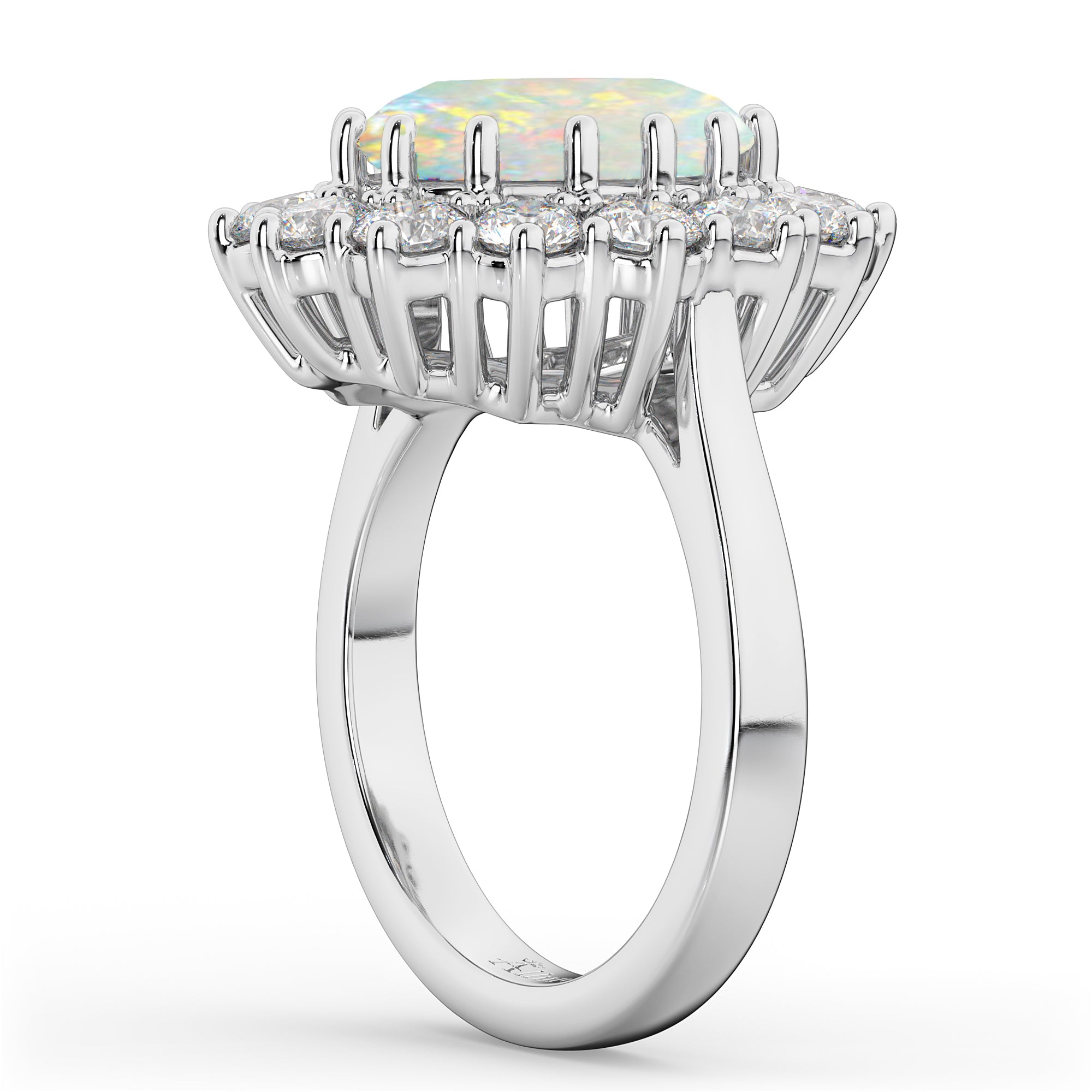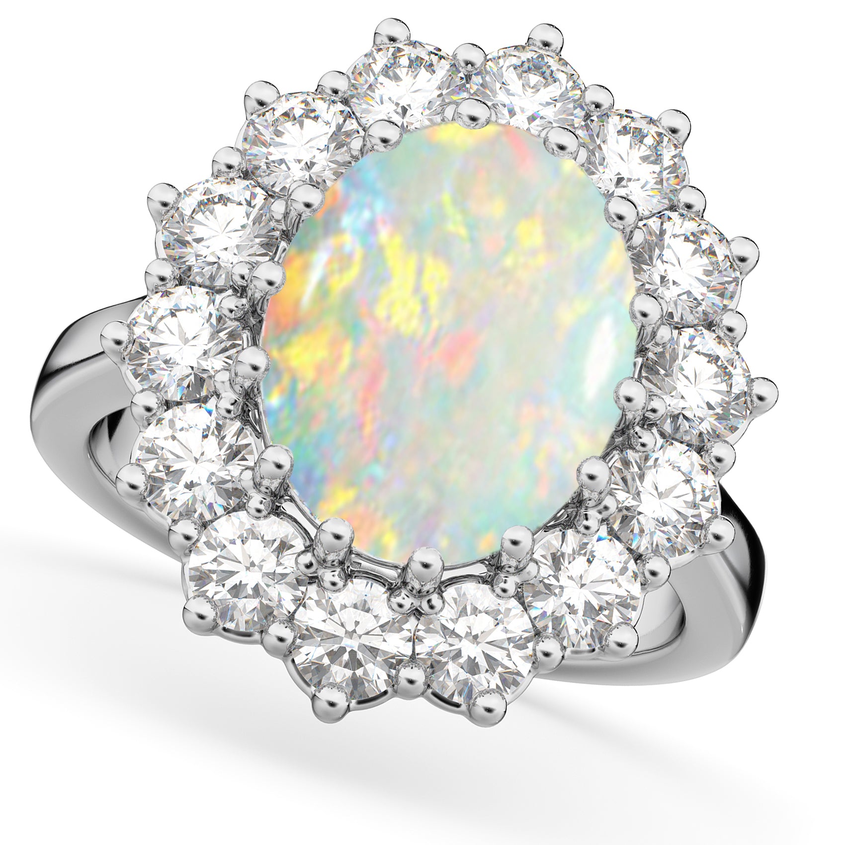 Oval Opal & Diamond Halo Lady Di Ring 14k White Gold (6.40ct)
