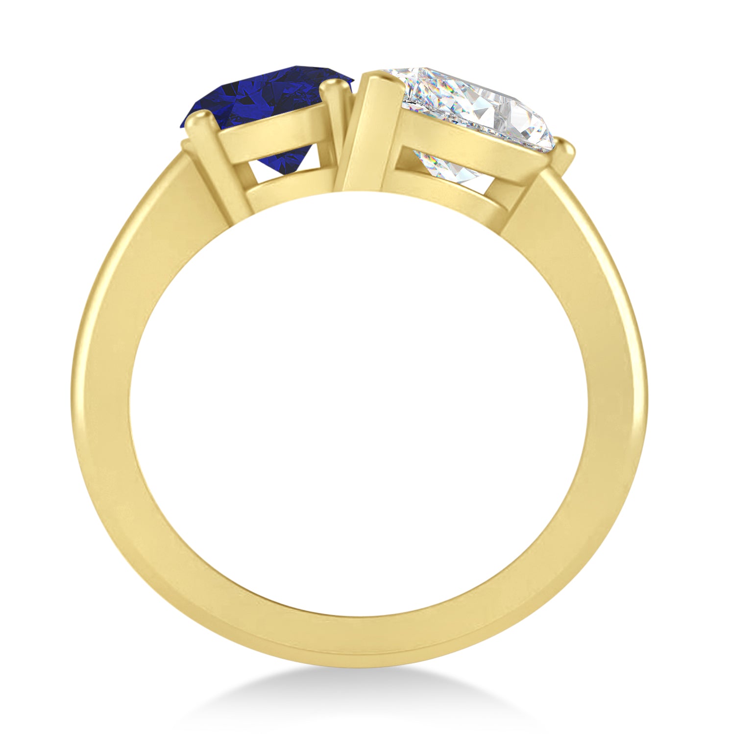 Oval/Pear Diamond & Blue Sapphire Toi et Moi Ring 14k Yellow Gold (4.50ct)