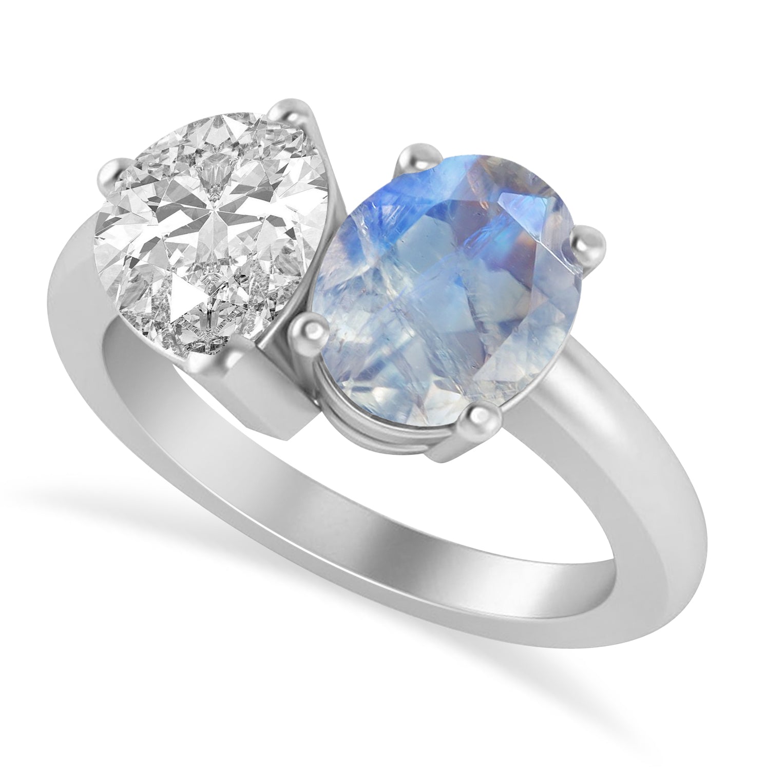 Oval/Pear Diamond & Moonstone Toi et Moi Ring 14k White Gold (4.50ct)