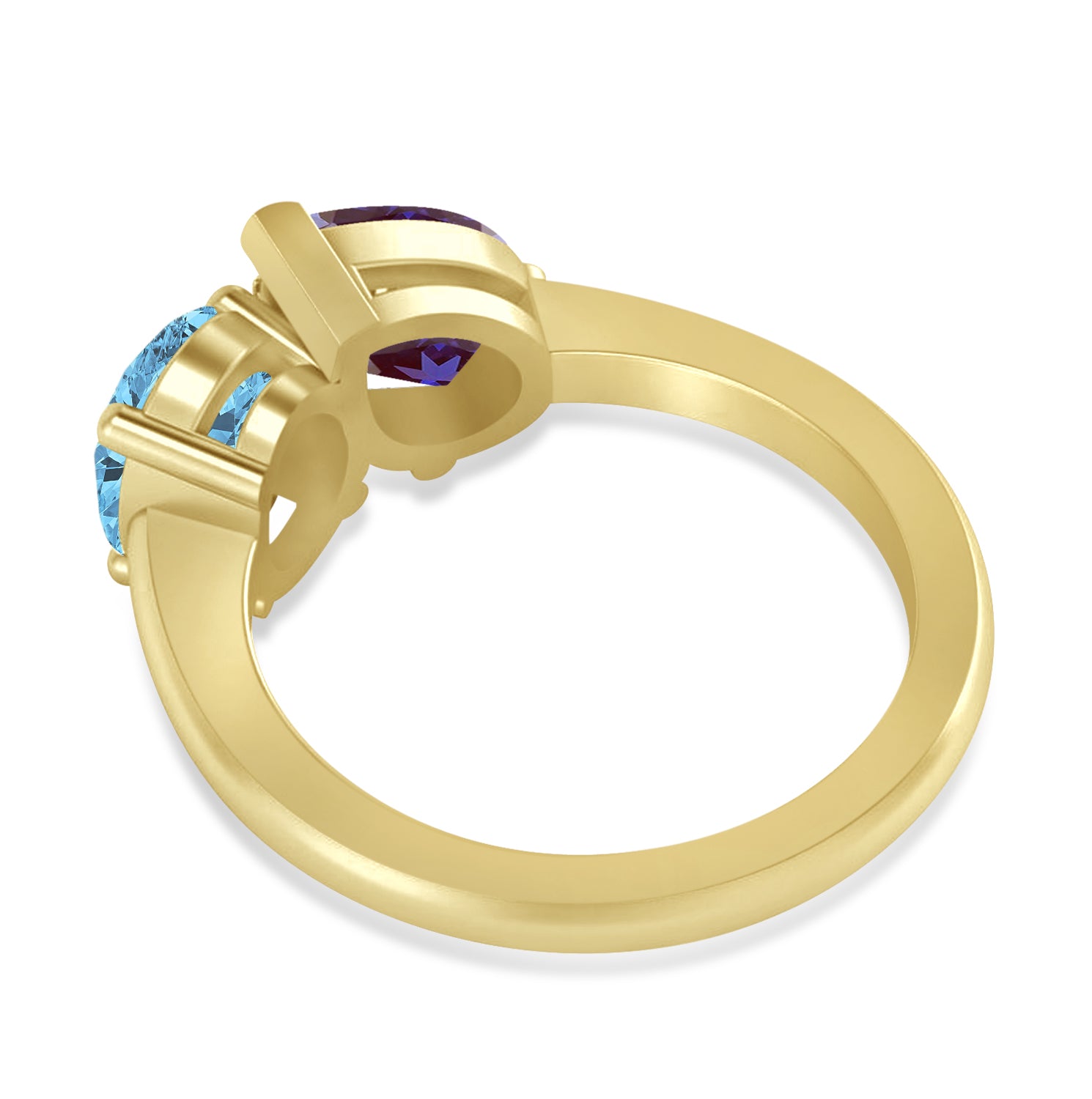 Oval/Pear Lab Alexandrite & Blue Topaz Toi et Moi Ring 18k Yellow Gold