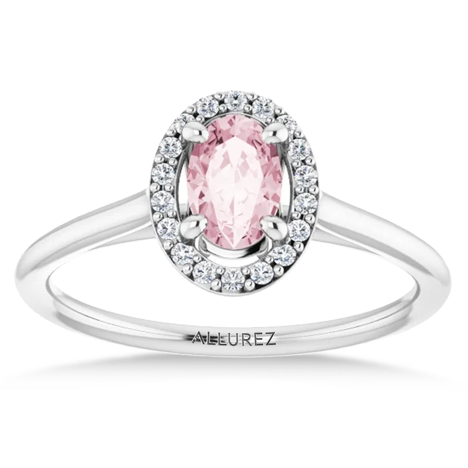 Oval Pink Morganite & Diamond Halo Ring 14K White Gold (0.45ct)