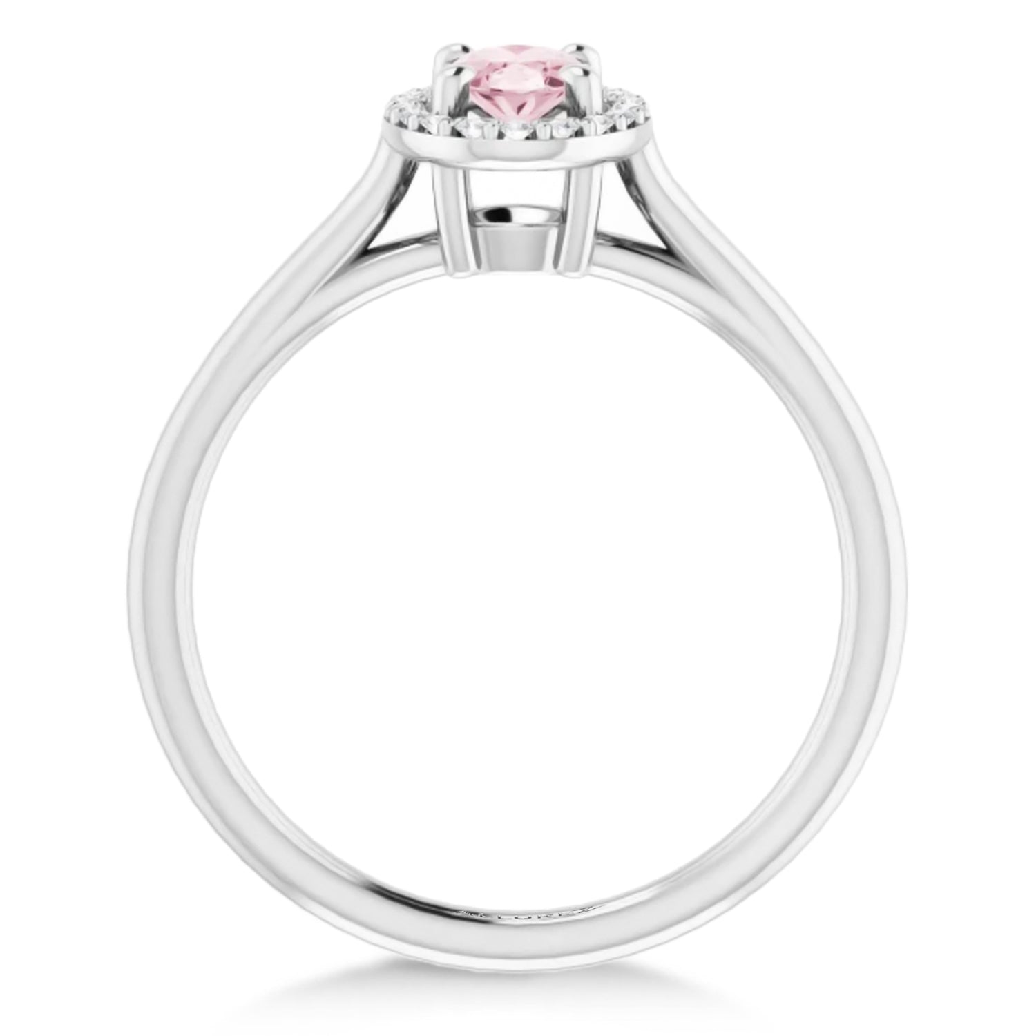The centerpiece, a mesmerizing 0.36ct oval pink morganite (6x4mm), is securely held in a 4-prong setting and encircled by a radiant halo of 18 natural diamonds (GH color, I1 clarity, 0.09ct total). Designed with precision, its polished rhodium-plated finish enhances durability to ensure a comfortable fit.