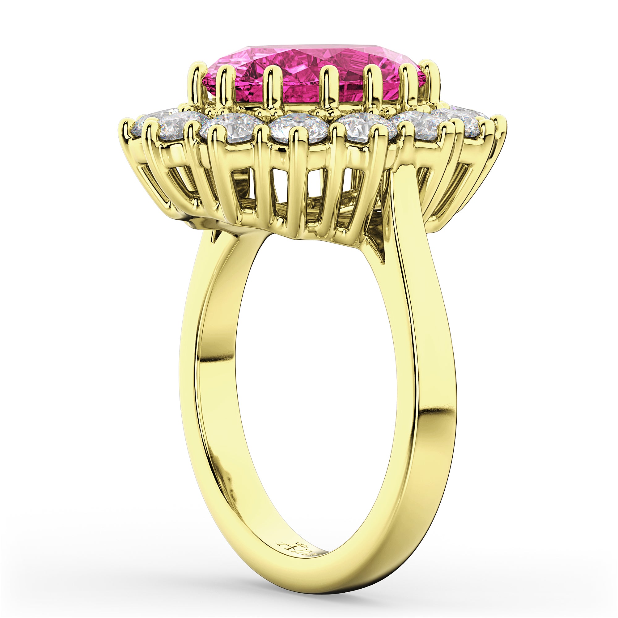 Oval Pink Tourmaline & Diamond Halo Lady Di Ring 18k Yellow Gold (6.40ct)
