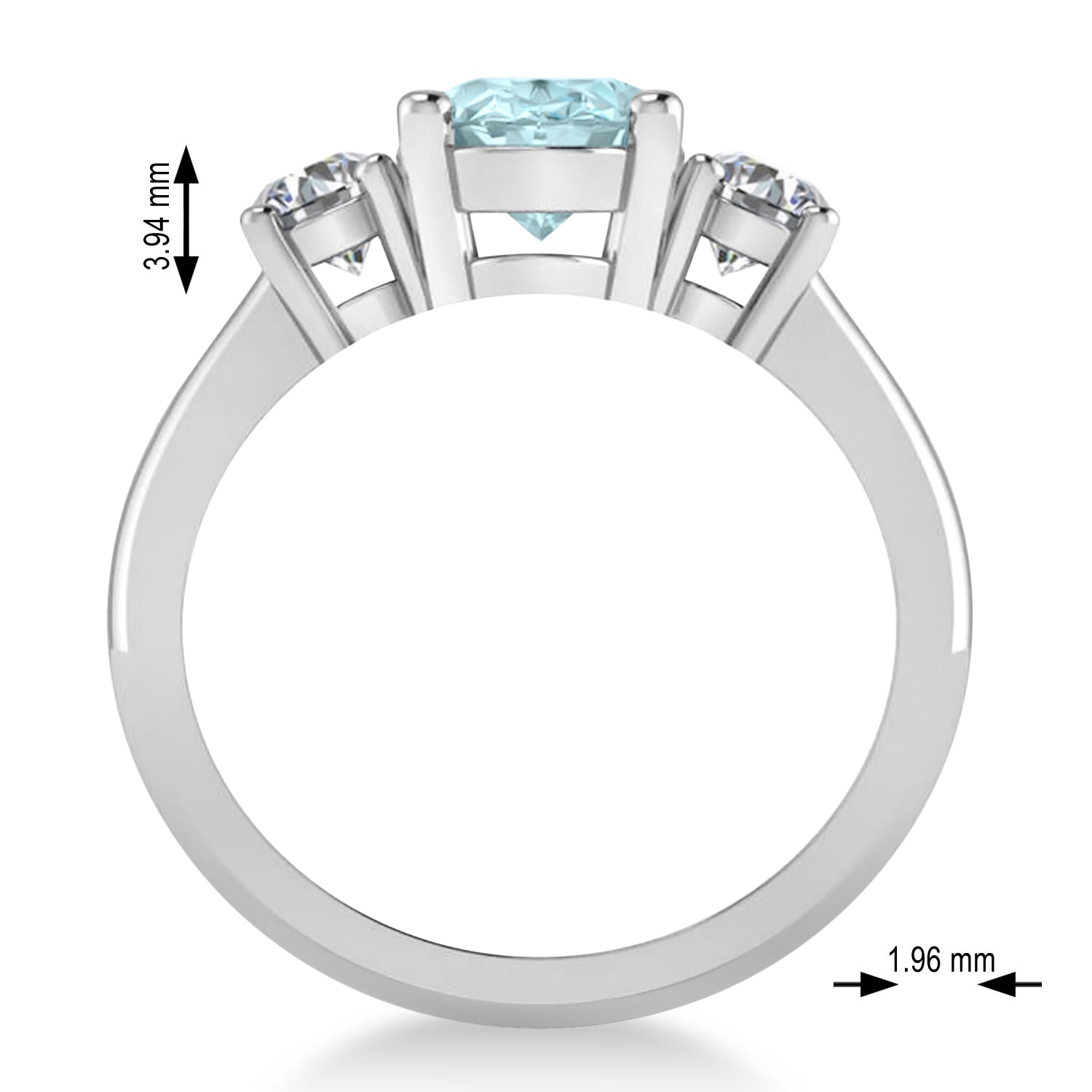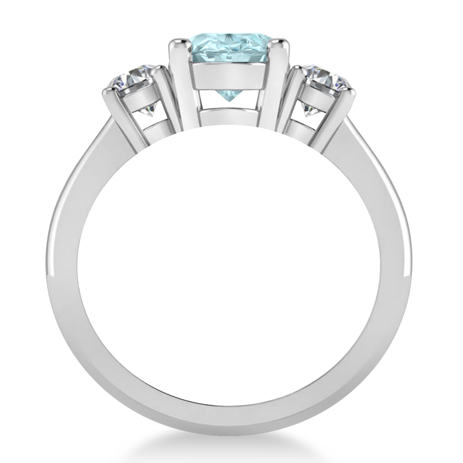 Oval & Round 3-Stone Aquamarine & Diamond Engagement Ring 14k White Gold (3.00ct)