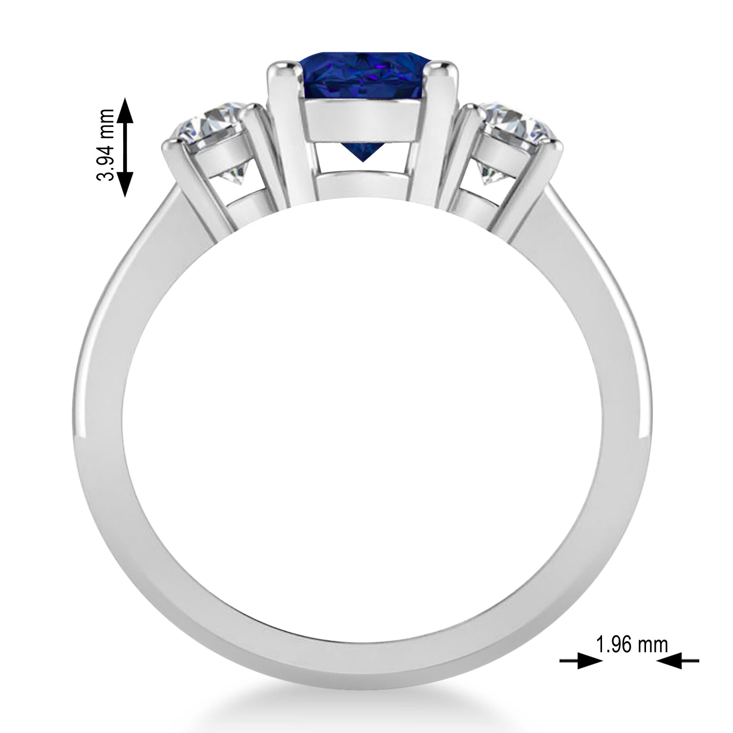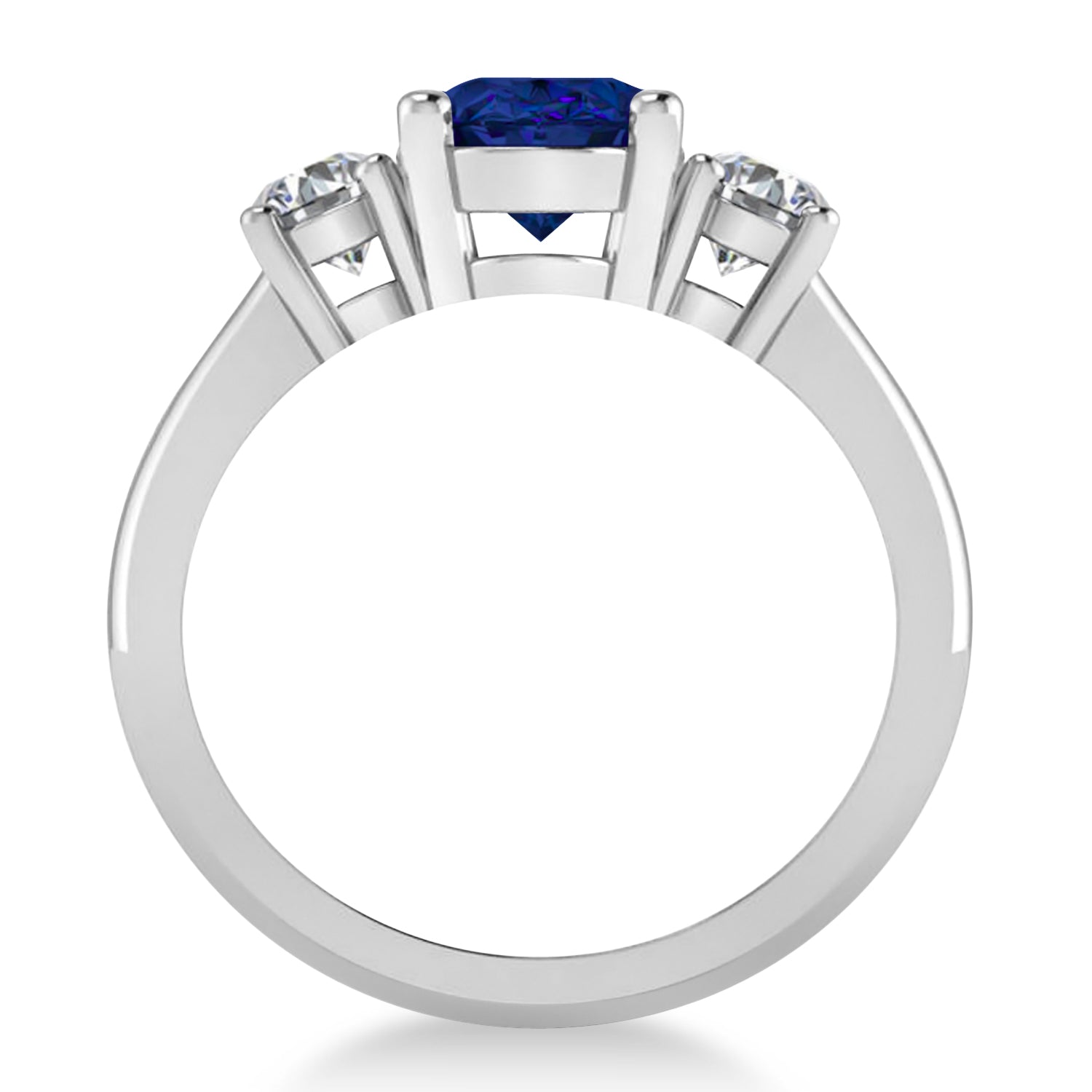 Oval & Round 3-Stone Blue Sapphire & Diamond Engagement Ring 14k White Gold (3.00ct)