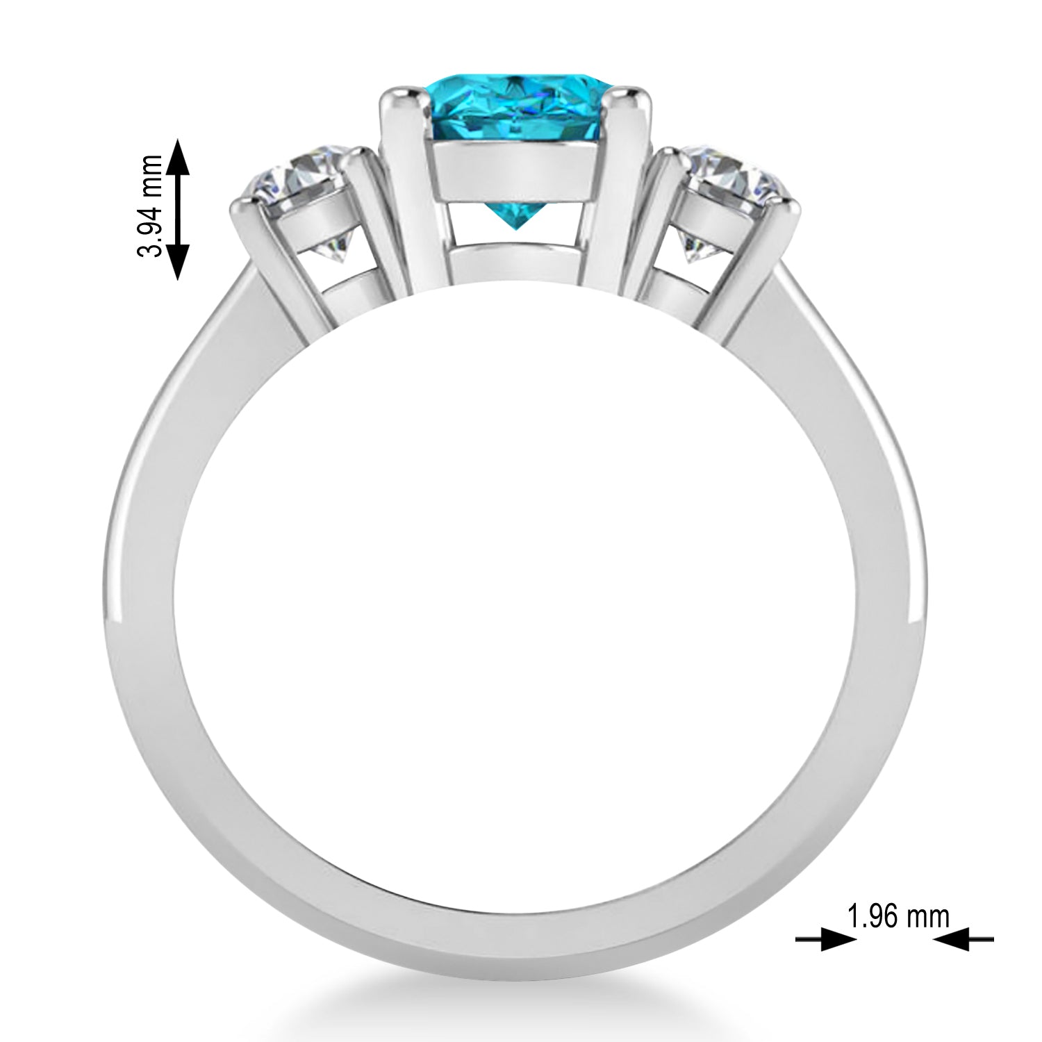 Oval & Round 3-Stone Blue & White Diamond Engagement Ring 14k White Gold (3.00ct)