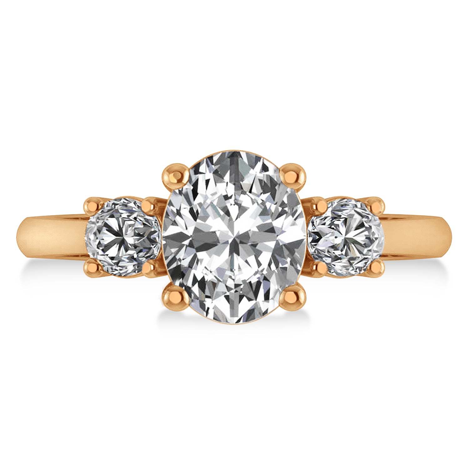 Oval & Round 3-Stone Diamond Engagement Ring 14k Rose Gold (3.00ct)