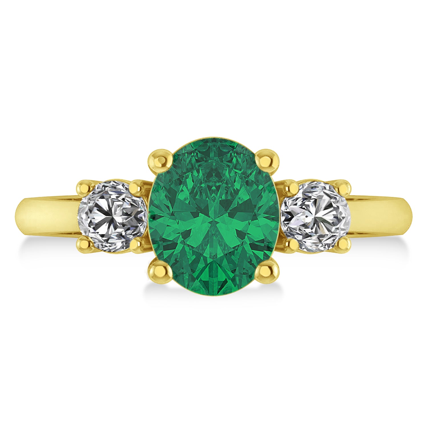 Oval & Round 3-Stone Emerald & Diamond Engagement Ring 14k Yellow Gold