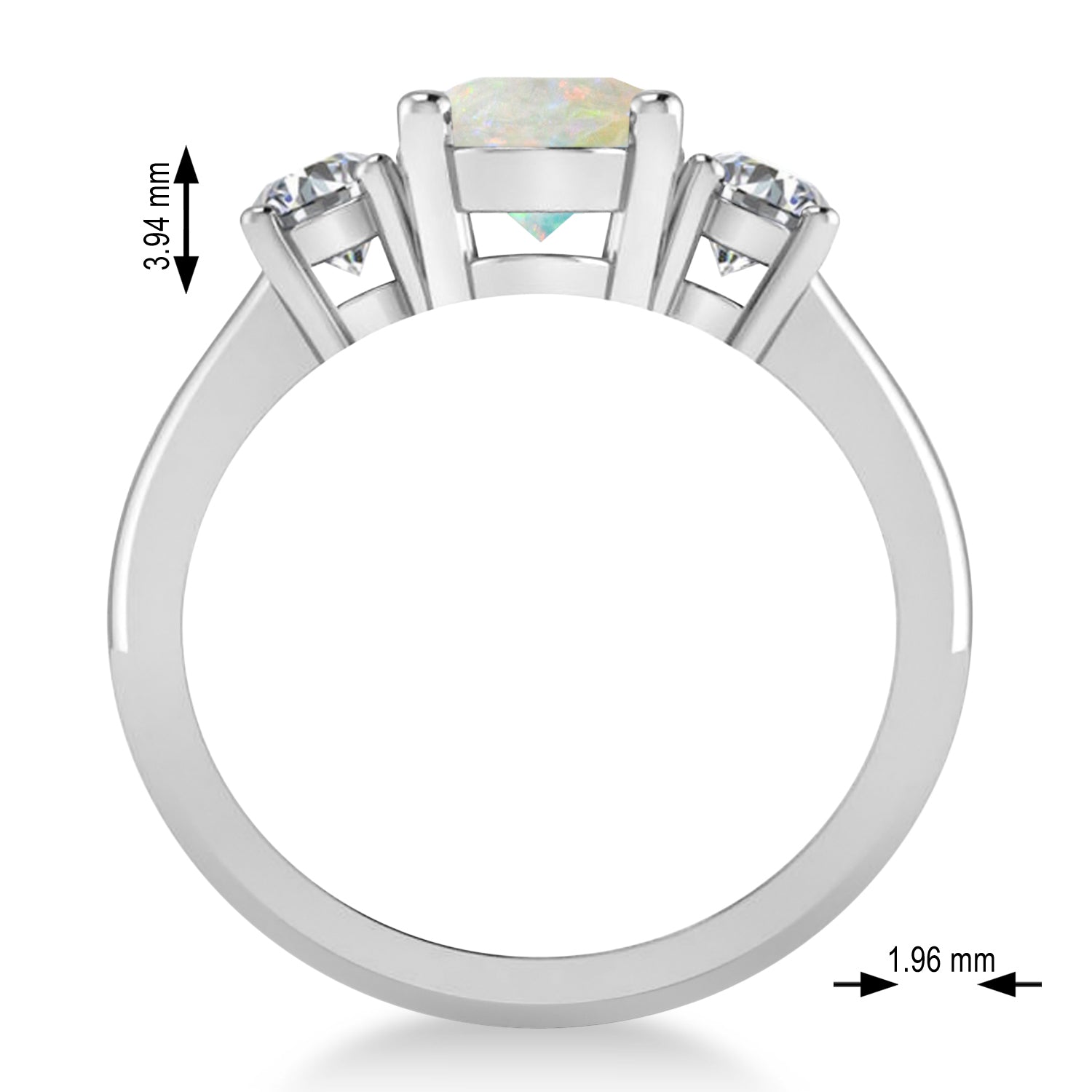 All stones are prong set with a combined 3.0 total carat weight. Diamonds are rated G-H for color and SI1-SI2 for clarity; the opal is rated eye-clean for clarity.