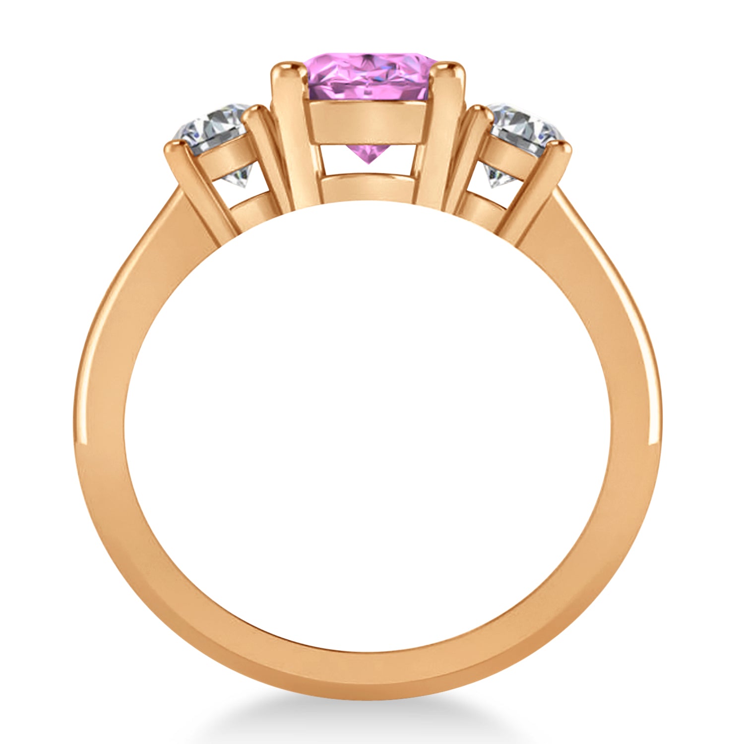 Oval & Round 3-Stone Pink Sapphire & Diamond Engagement Ring 14k Rose Gold (3.00ct)