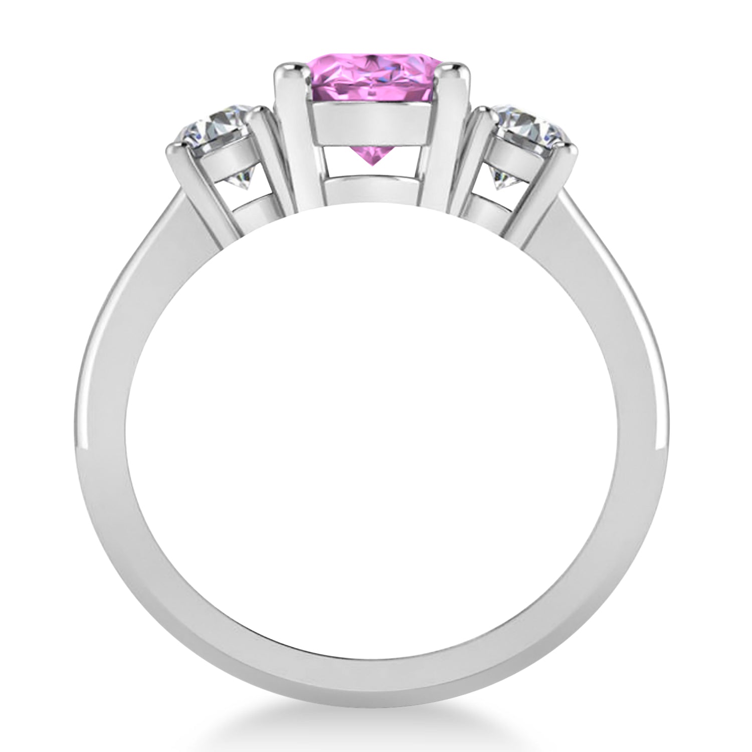 Oval & Round 3-Stone Pink Sapphire & Diamond Engagement Ring 14k White Gold (3.00ct)