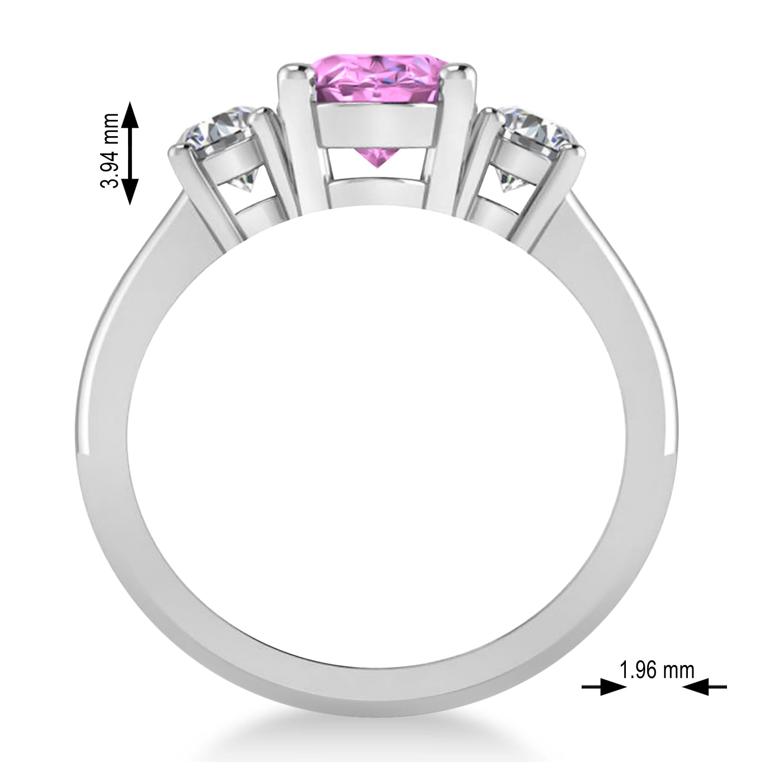All stones are prong set with a combined 3.0 total carat weight. Diamonds are rated G-H for color and SI1-SI2 for clarity; the pink sapphire is rated eye-clean for clarity.