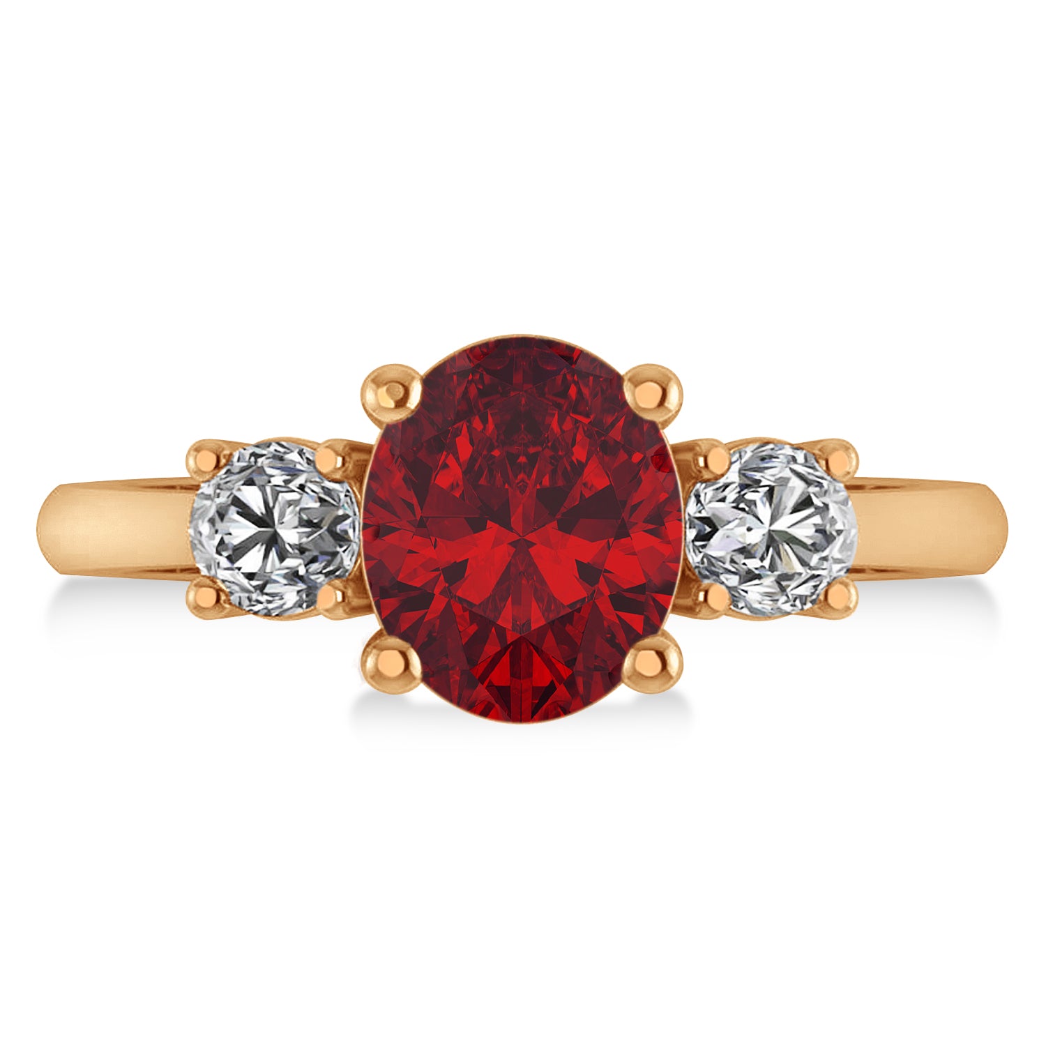 Oval & Round 3-Stone Ruby & Diamond Engagement Ring 14k Rose Gold (3.00ct)