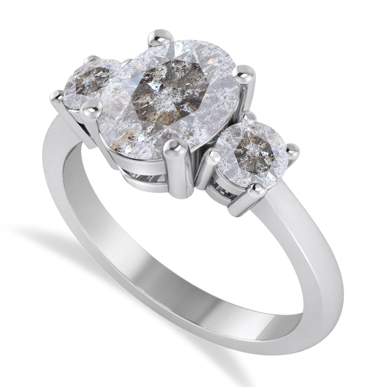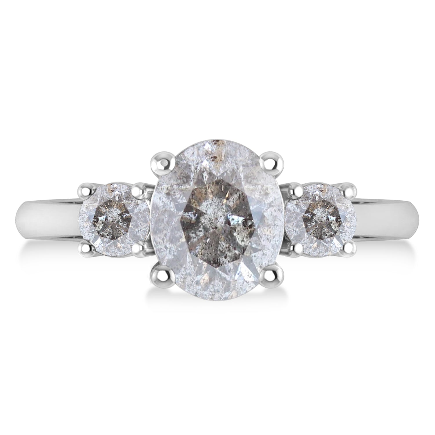 Oval & Round 3-Stone Salt & Pepper Diamond Engagement Ring 14k White Gold (3.00ct)