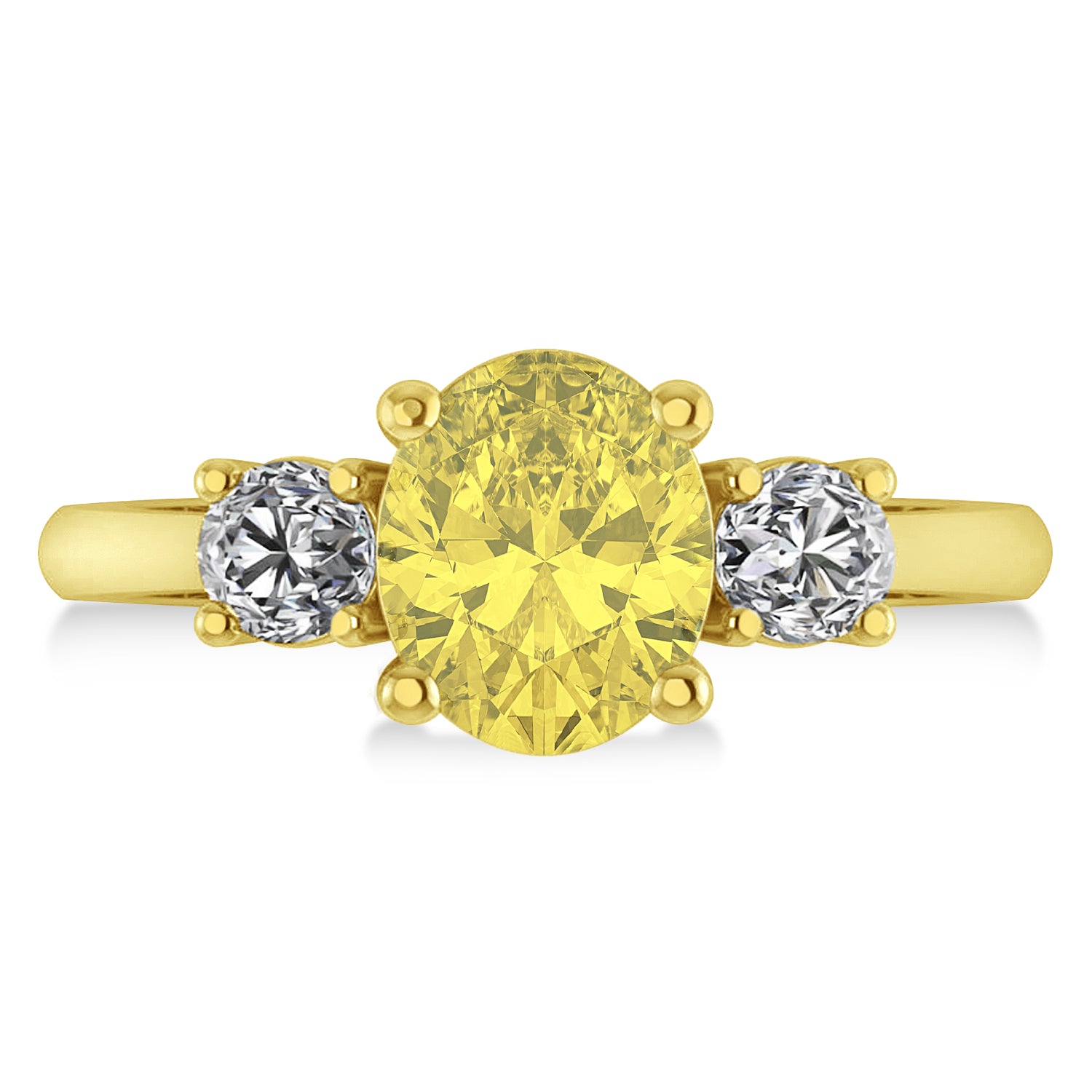 Oval & Round 3-Stone Yellow & White Diamond Engagement Ring 14k Yellow Gold (3.00ct)