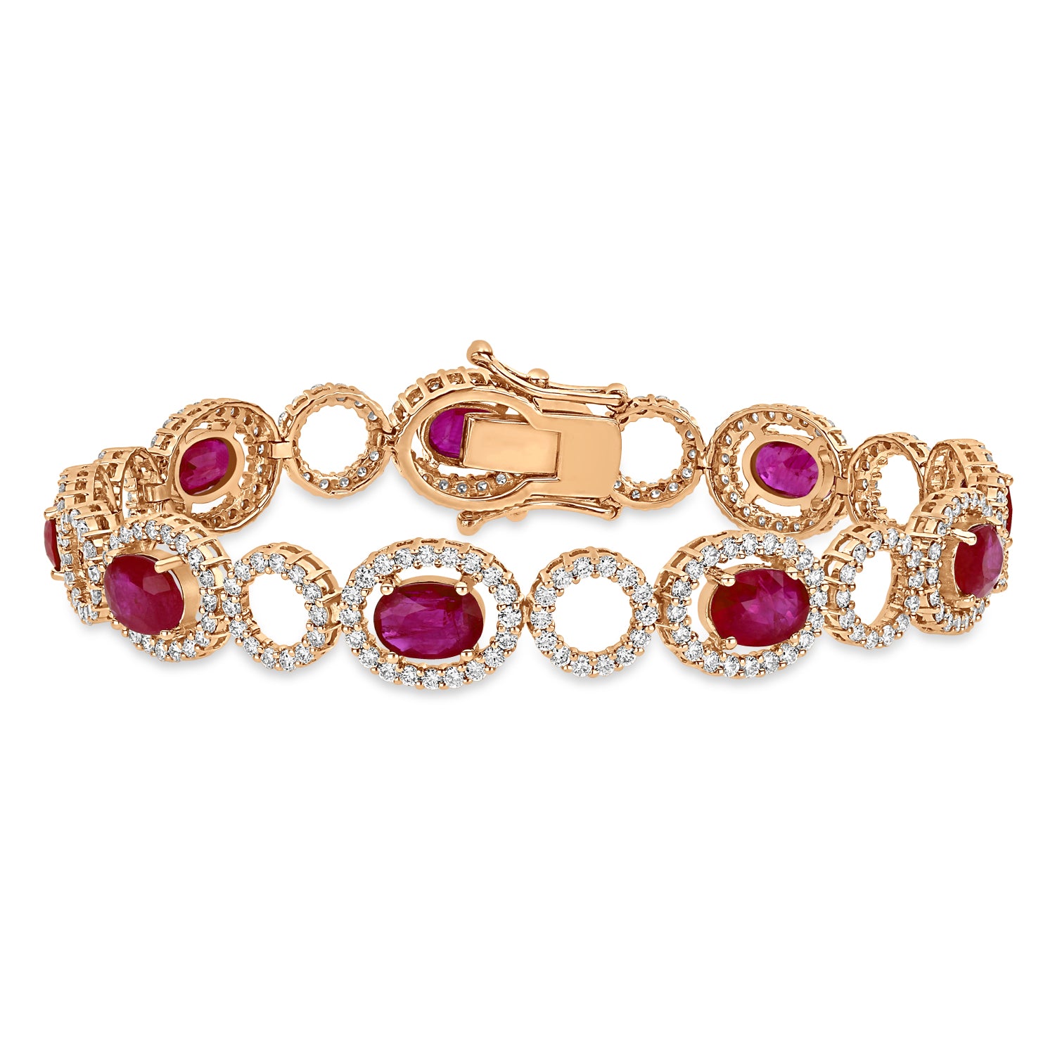 Oval Ruby & Round Diamond Bracelet 18k Rose Gold (12.10 ct)