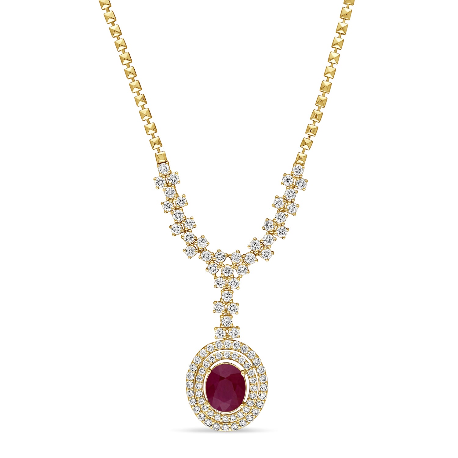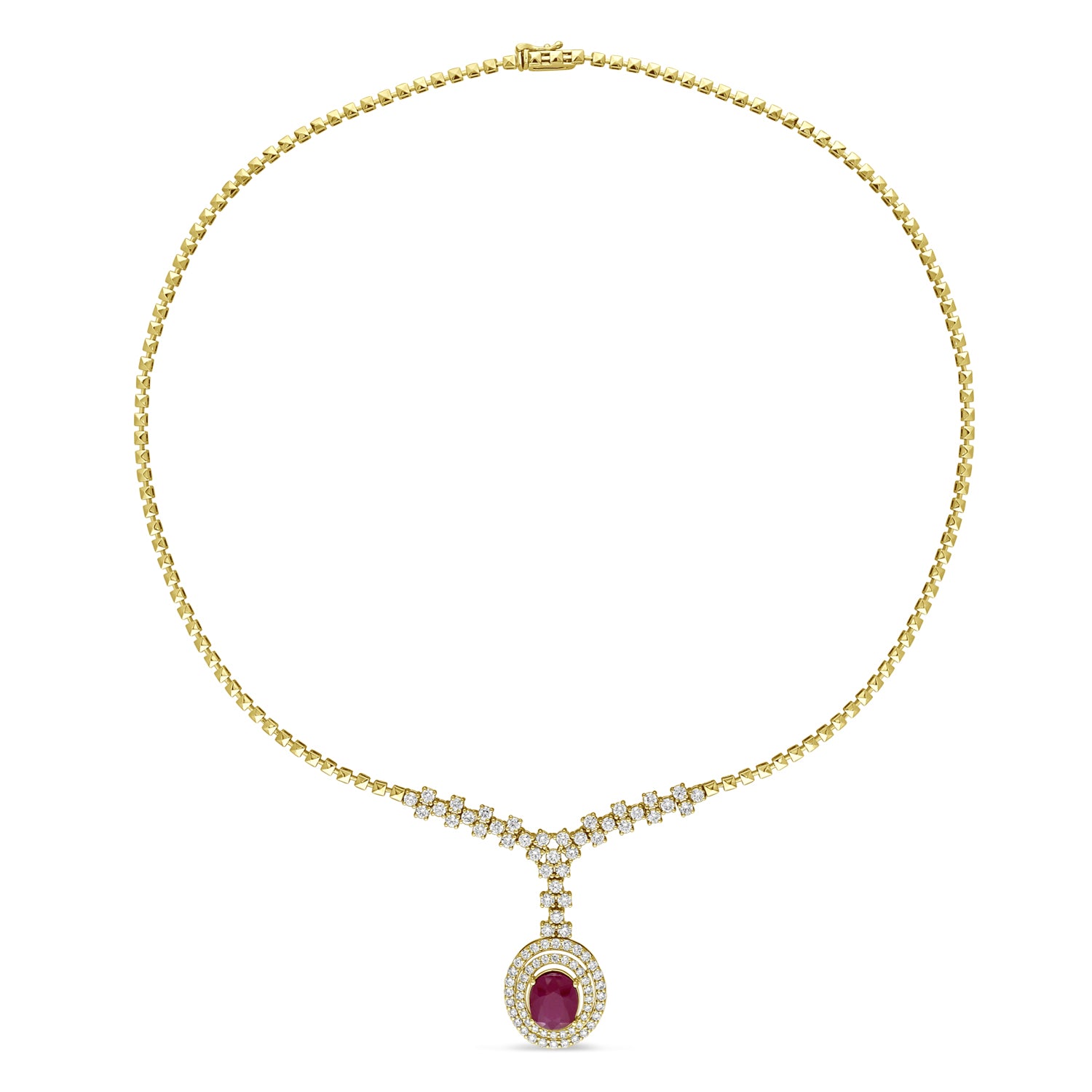 Oval Ruby & Round Diamond Pendant Necklace 14k Yellow Gold (6.50 ct )