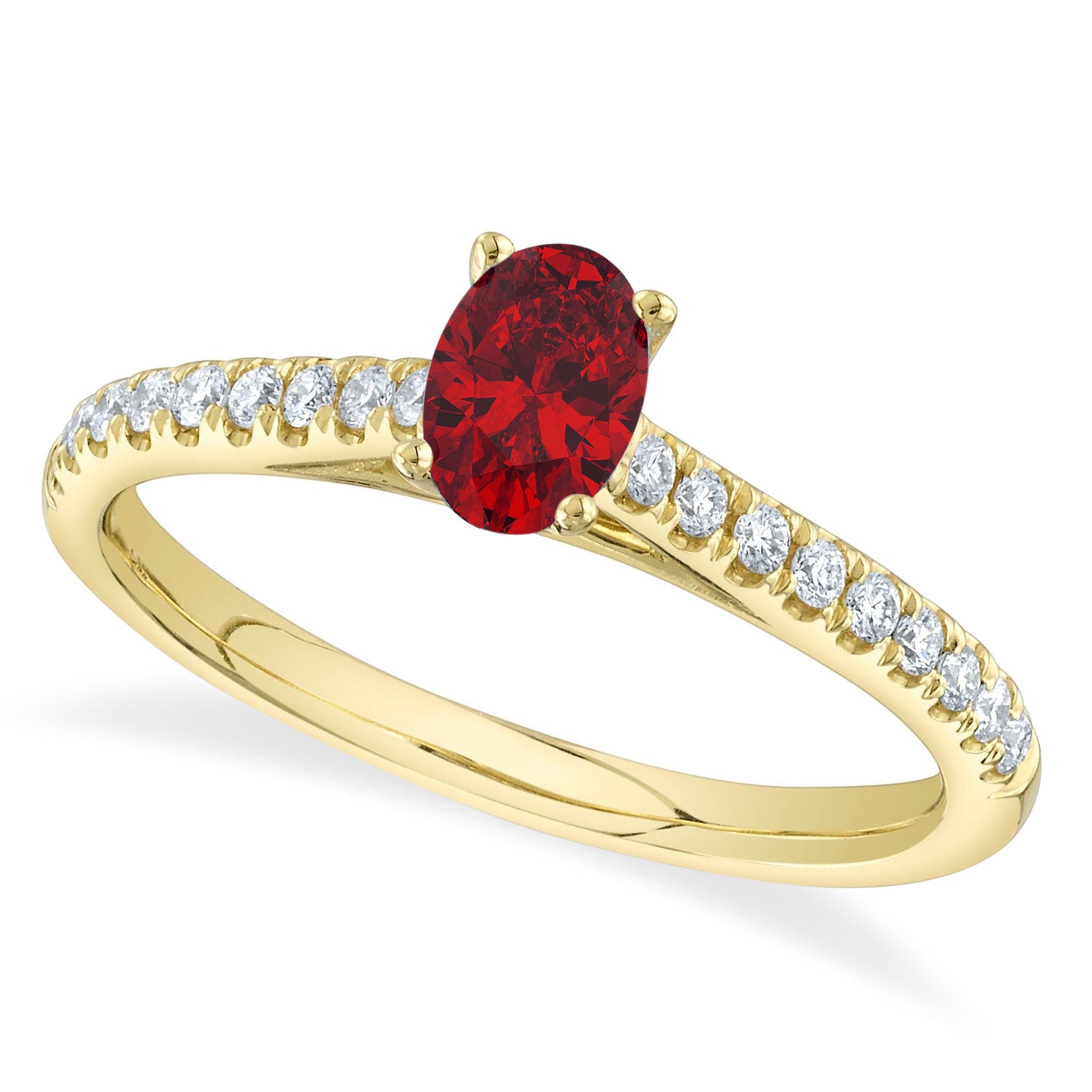 Oval Ruby Solitaire & Diamond Engagement Ring 14K Yellow Gold (0.69ct)