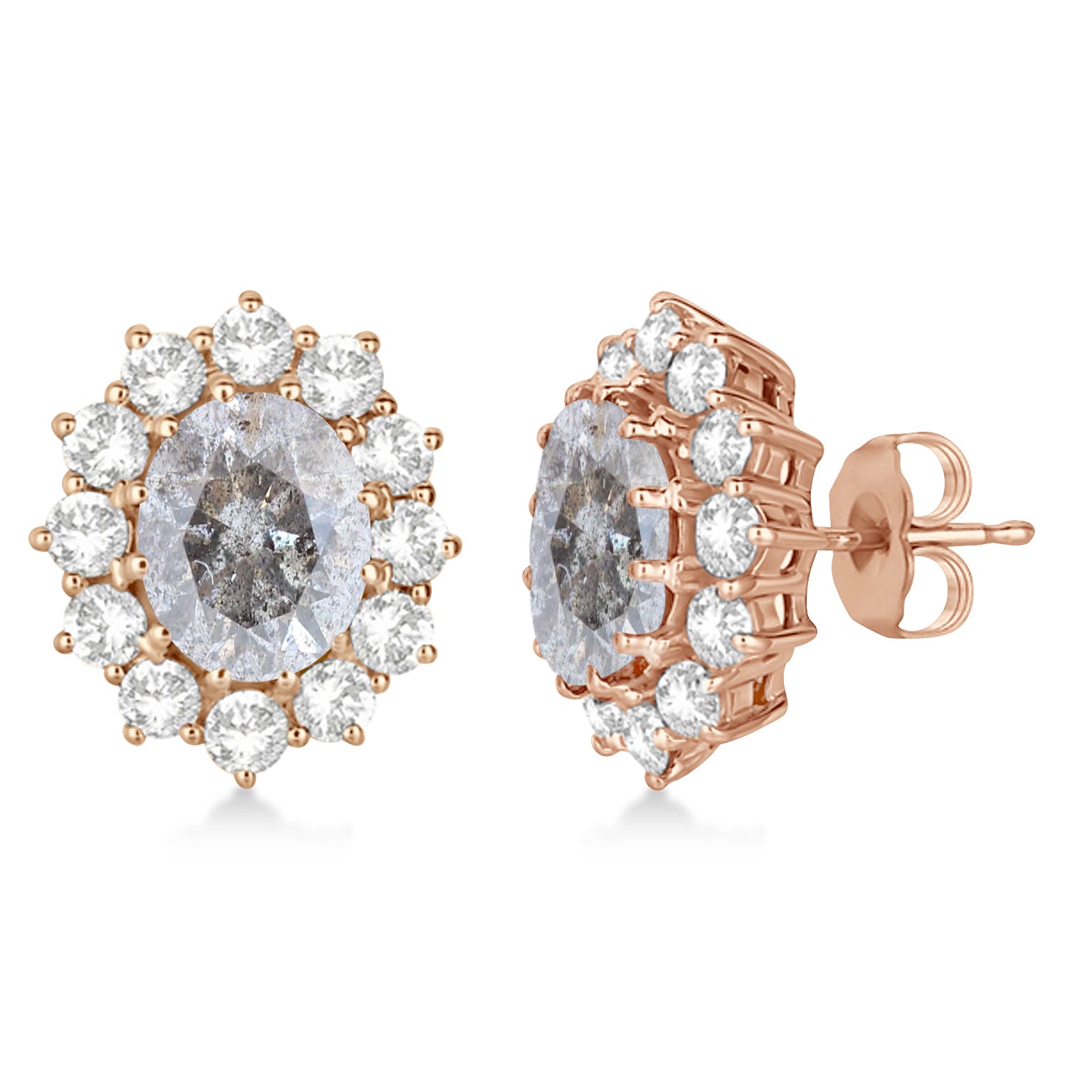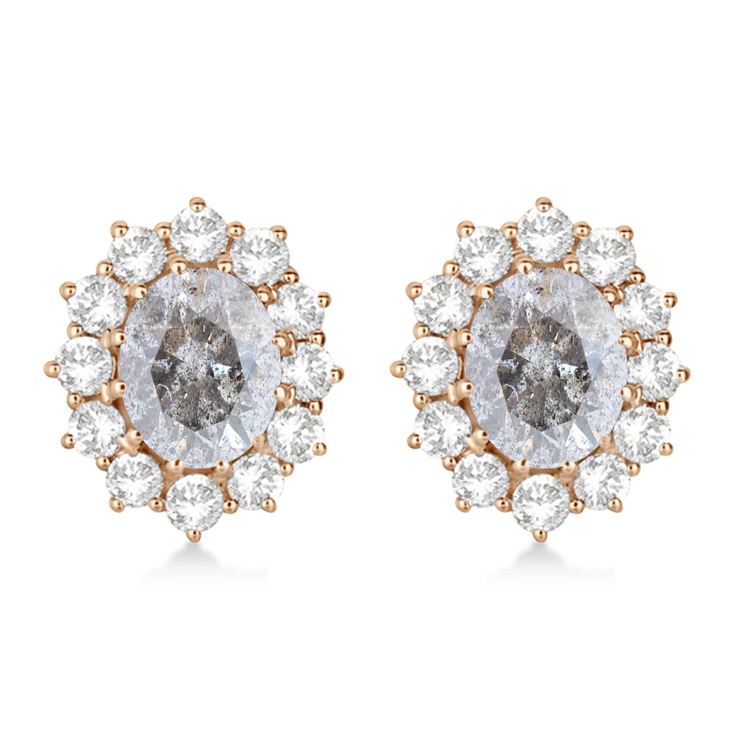 Oval Salt & Pepper and White Diamond Earrings 14k Rose Gold (5.55ctw)