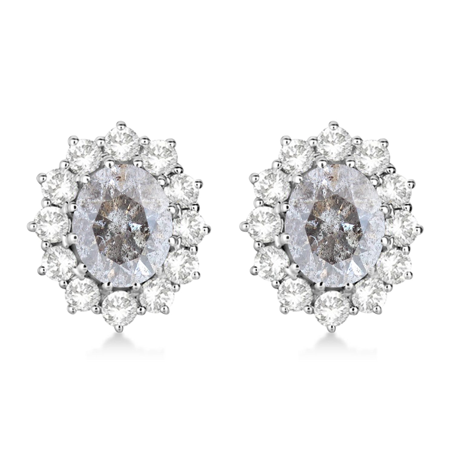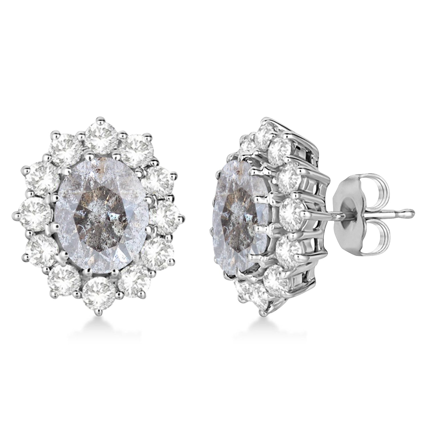 Oval Salt & Pepper and White Diamond Earrings 14k White Gold (5.55ctw)