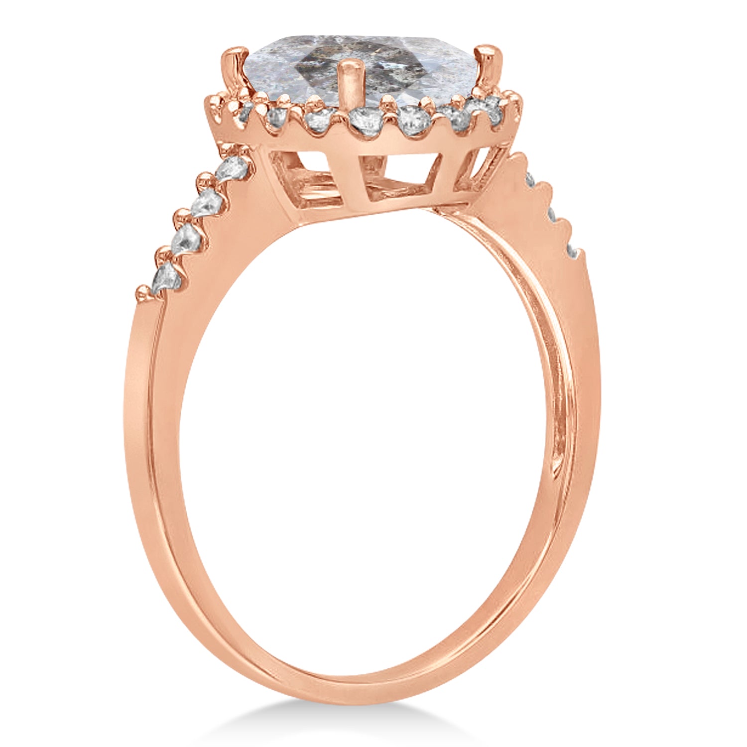 Oval Salt & Pepper & Halo Diamond Engagement Ring 14k Rose Gold 2.82ct
